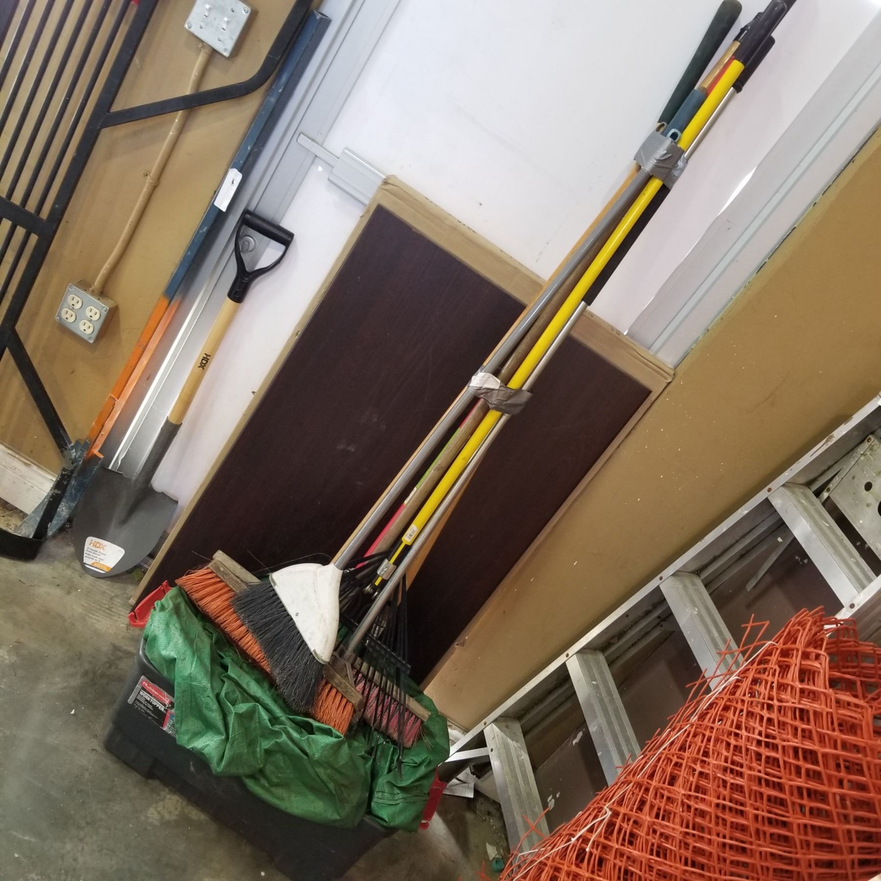 BUNDLE OF LONG-HANDLED TOOLS AND LARGE LIFT BAG