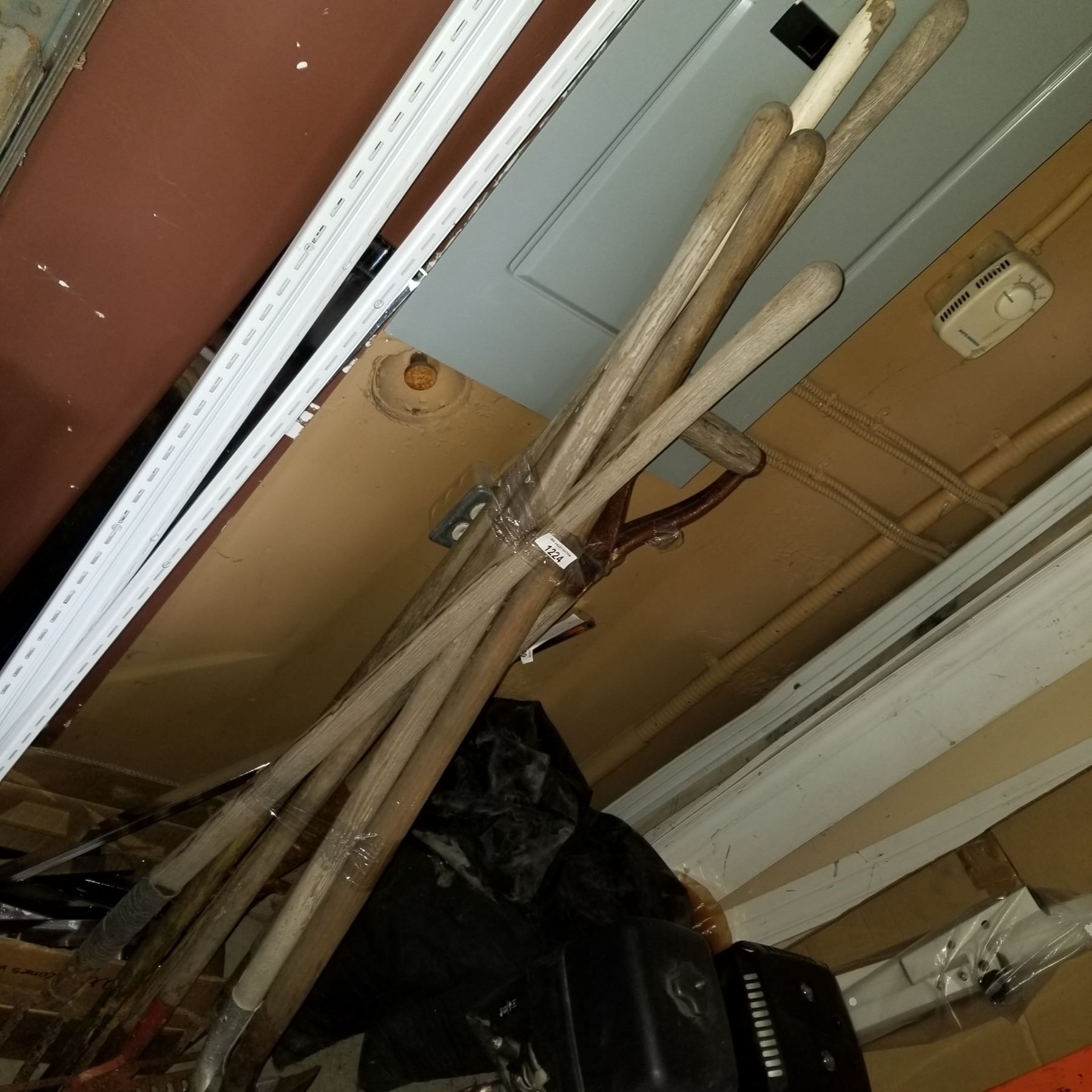BUNDLE OF RAKES, PITCH FORK, SHOVELS