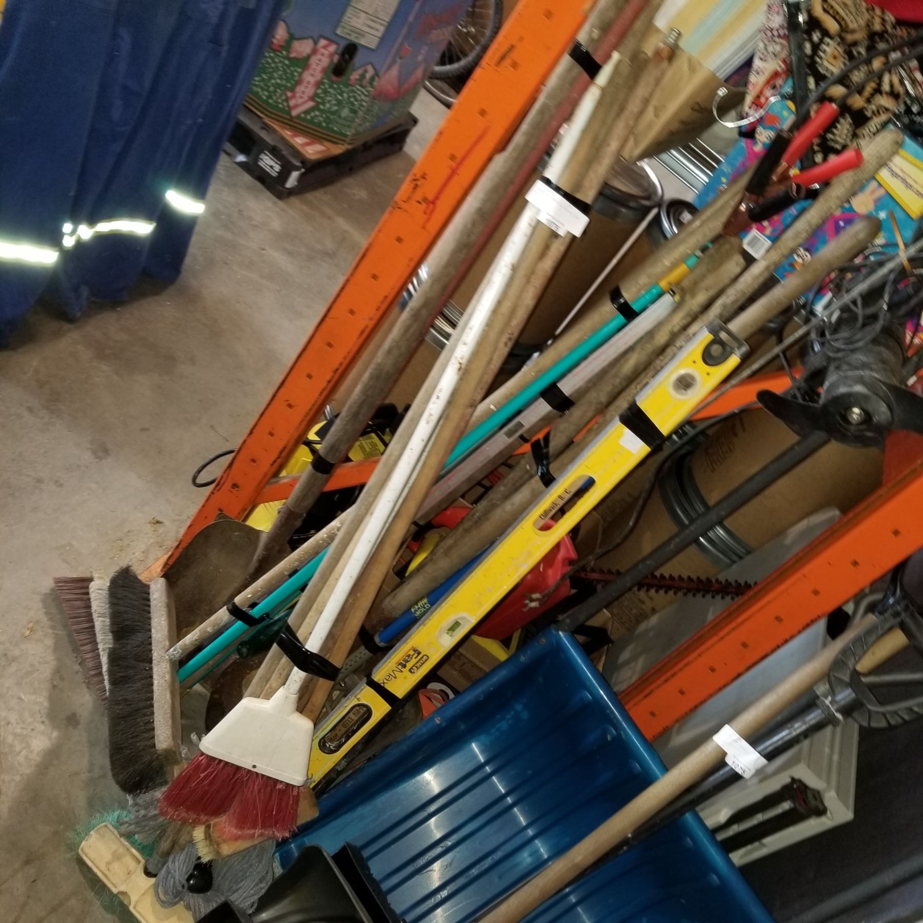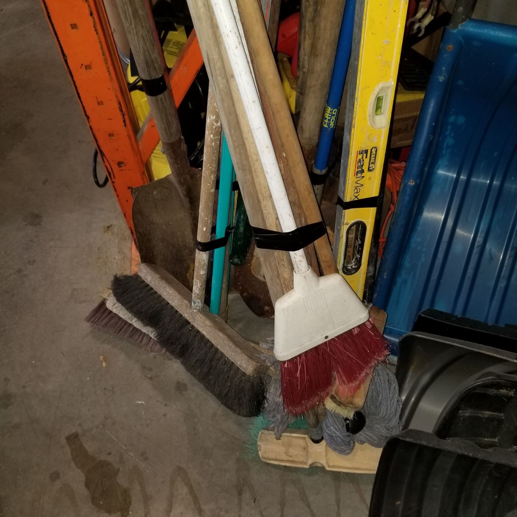 BUNDLE OF SHOVELS, BROOMS, AND MOPS