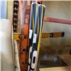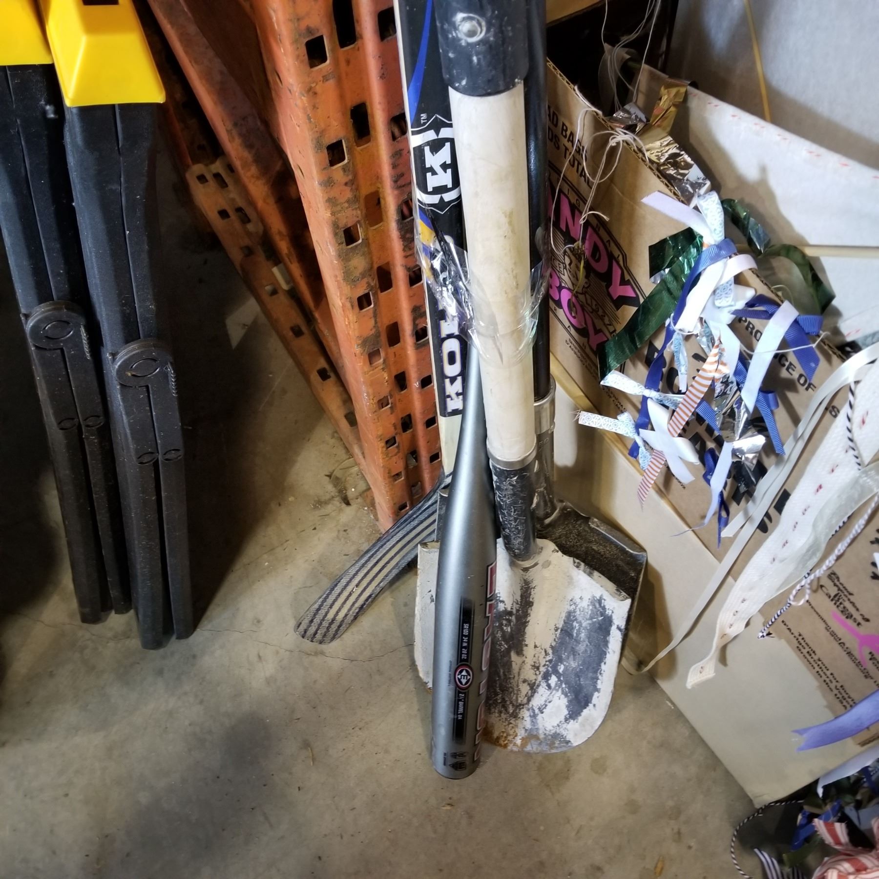 BUNDLE OF SHOVELS, NEW HOCKEY STICKS, AND BAT