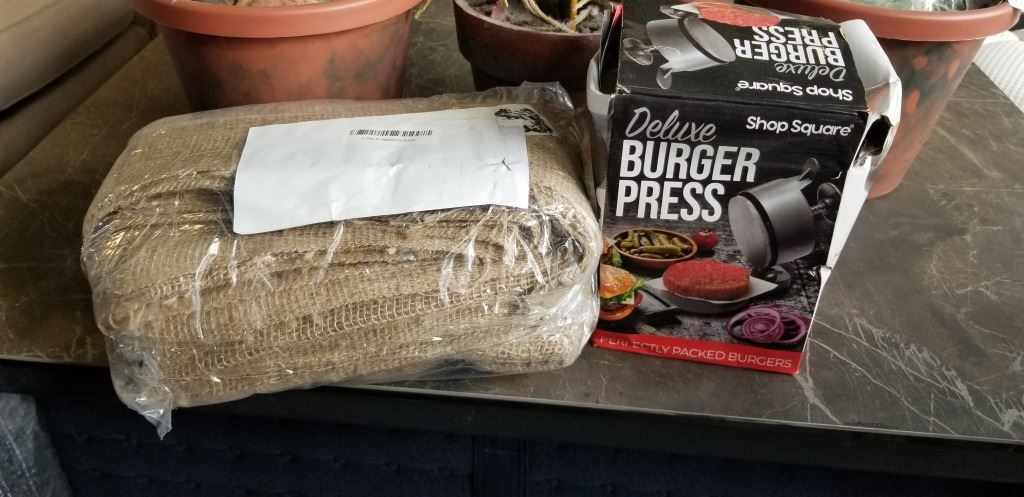 BURGER PRESS ANBD BURLAP BAGS