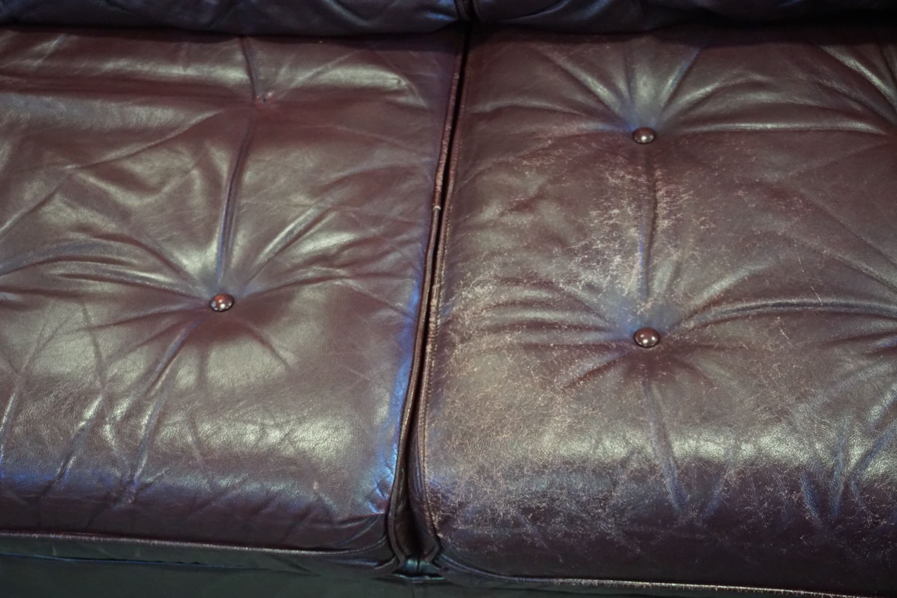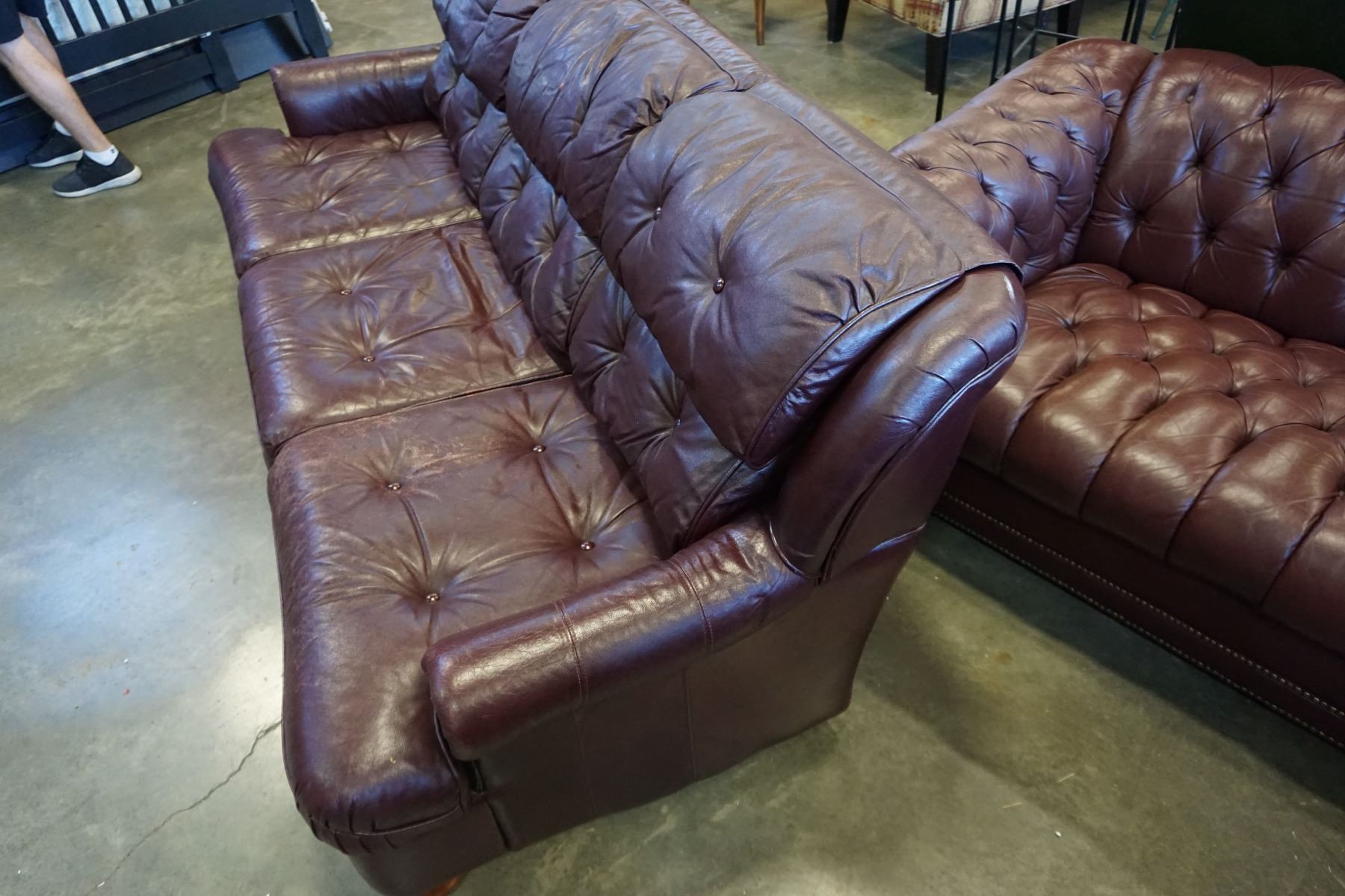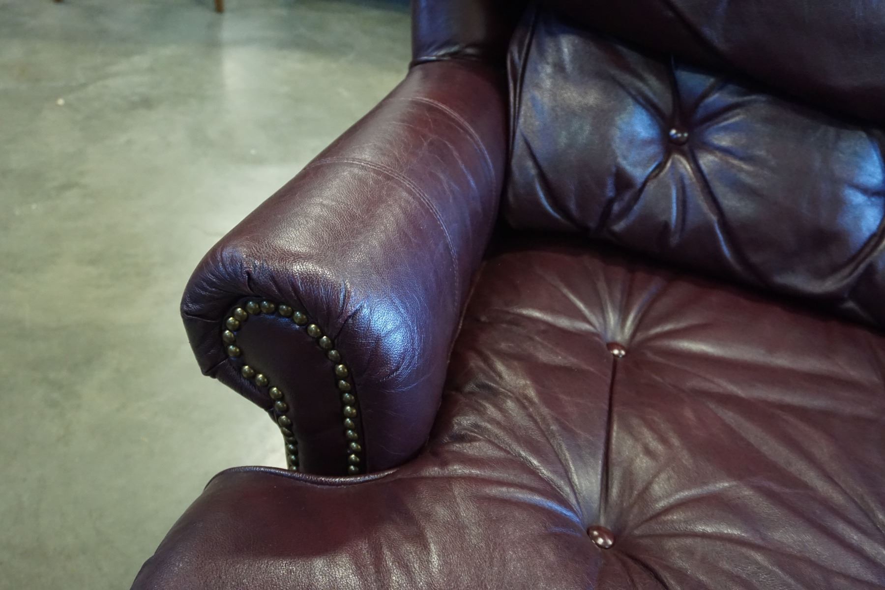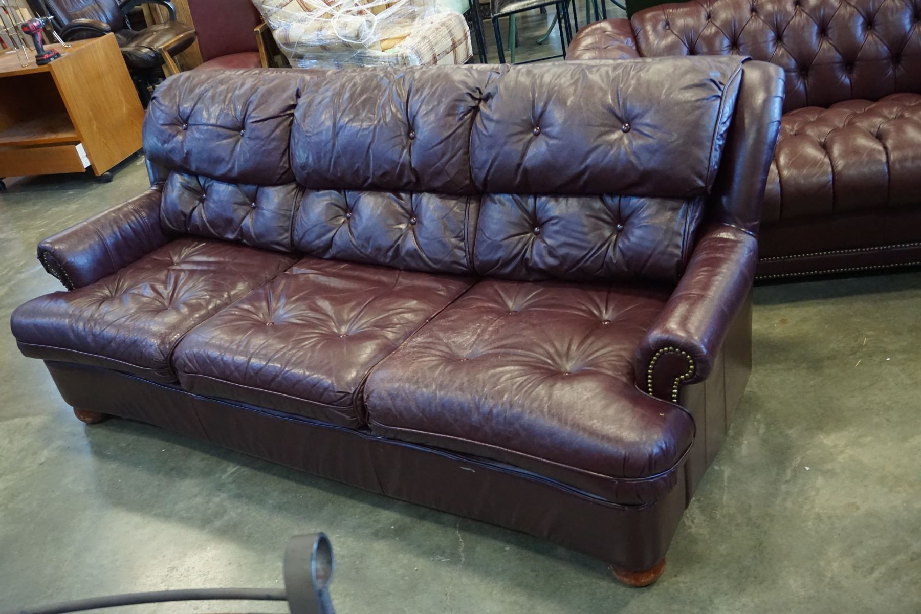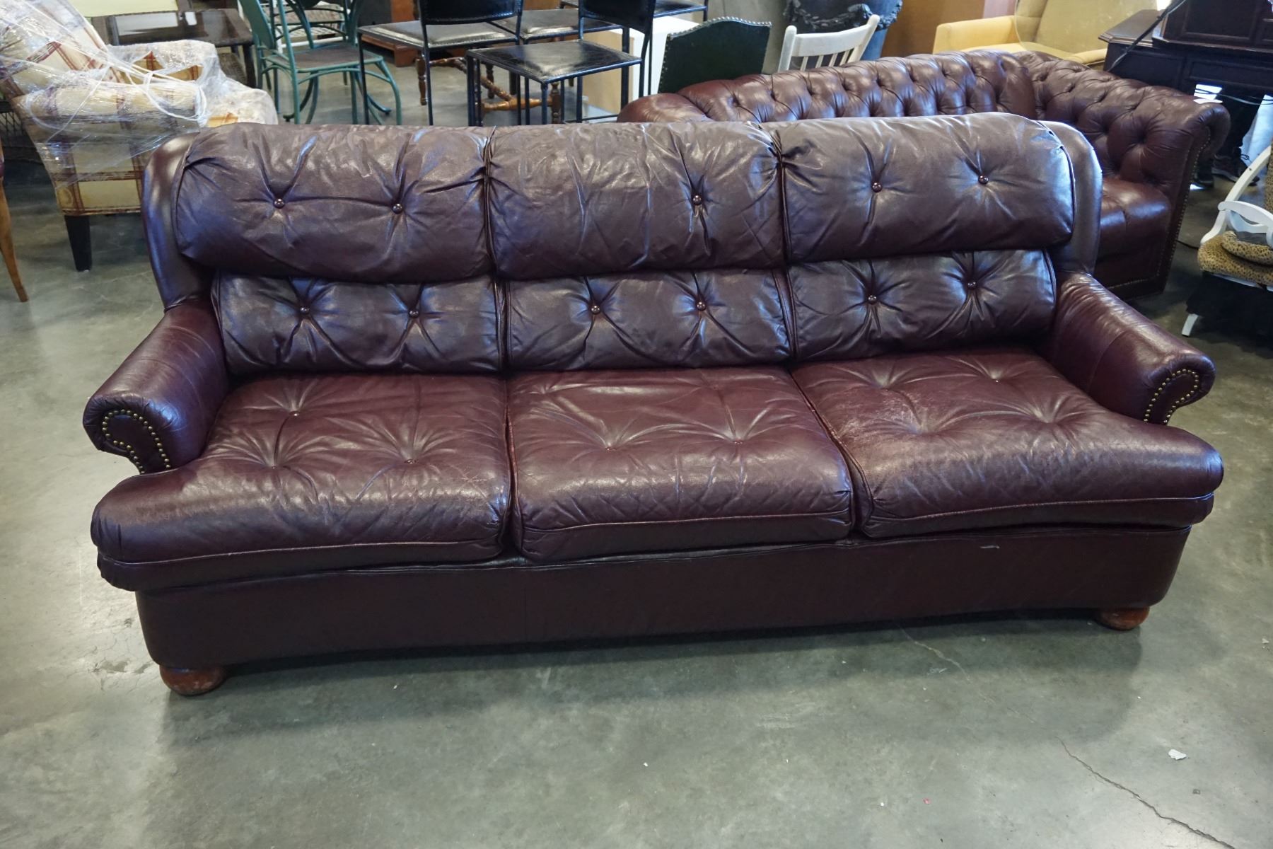 BURGUNDY STUDDED LEATHER SOFA
