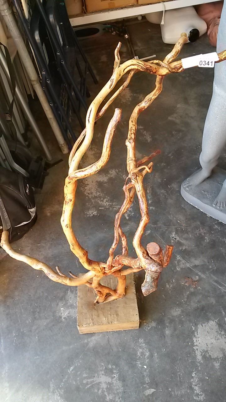 BURL FIGURE WITH CEMENT BASE
