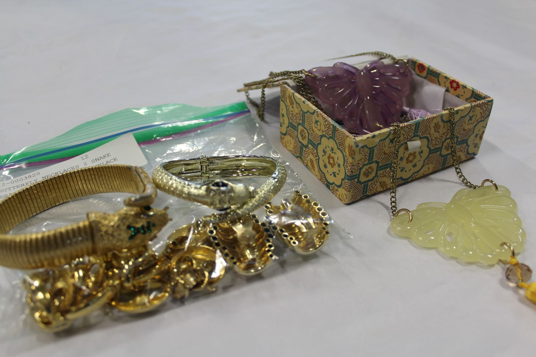 BUTTERFLY NECKLACES 2 SNAKE BRACELETS GOLD TONE NECKLACE