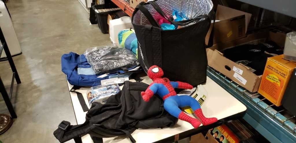Bag of travel mugs, with backpack, ministicks, hammock and toys