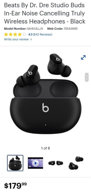 Beats By Dr. Dre Studio Buds In-Ear Noise Cancelling Truly Wireless Headphones - Black - Retail $179.99