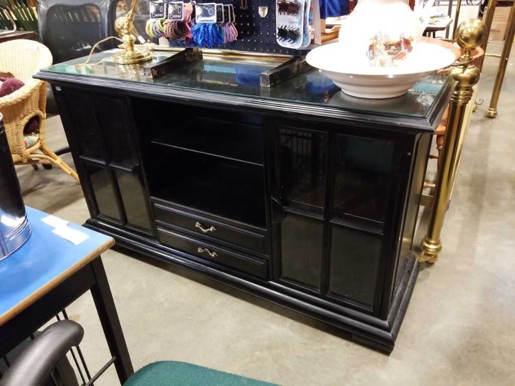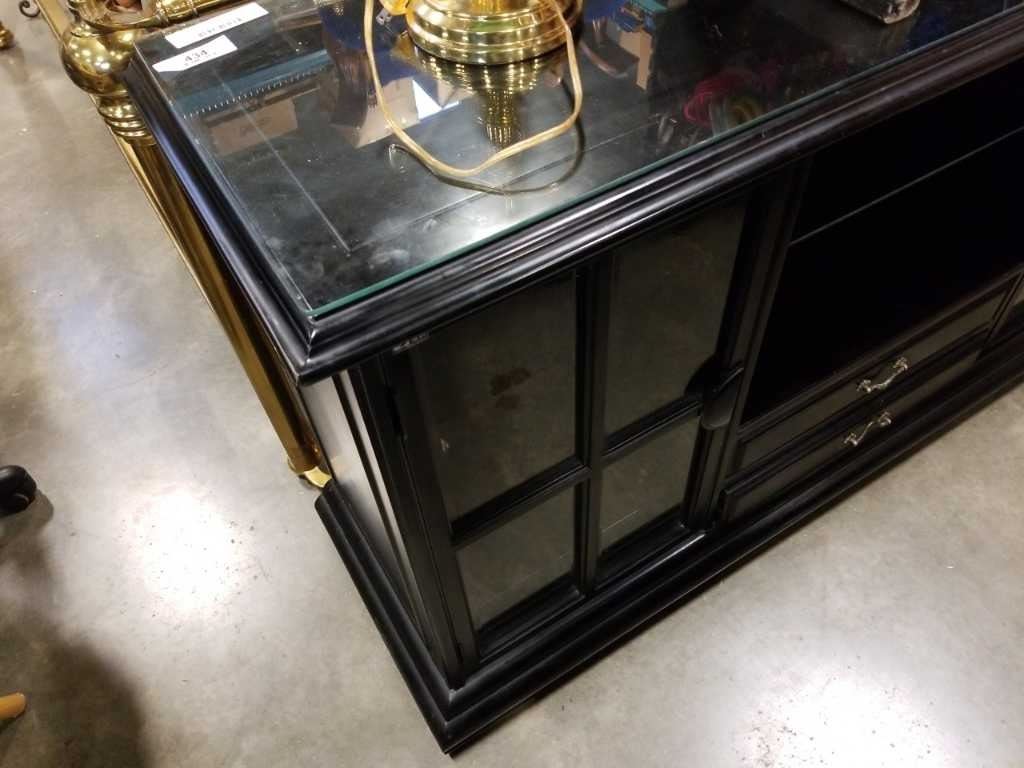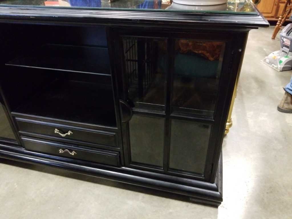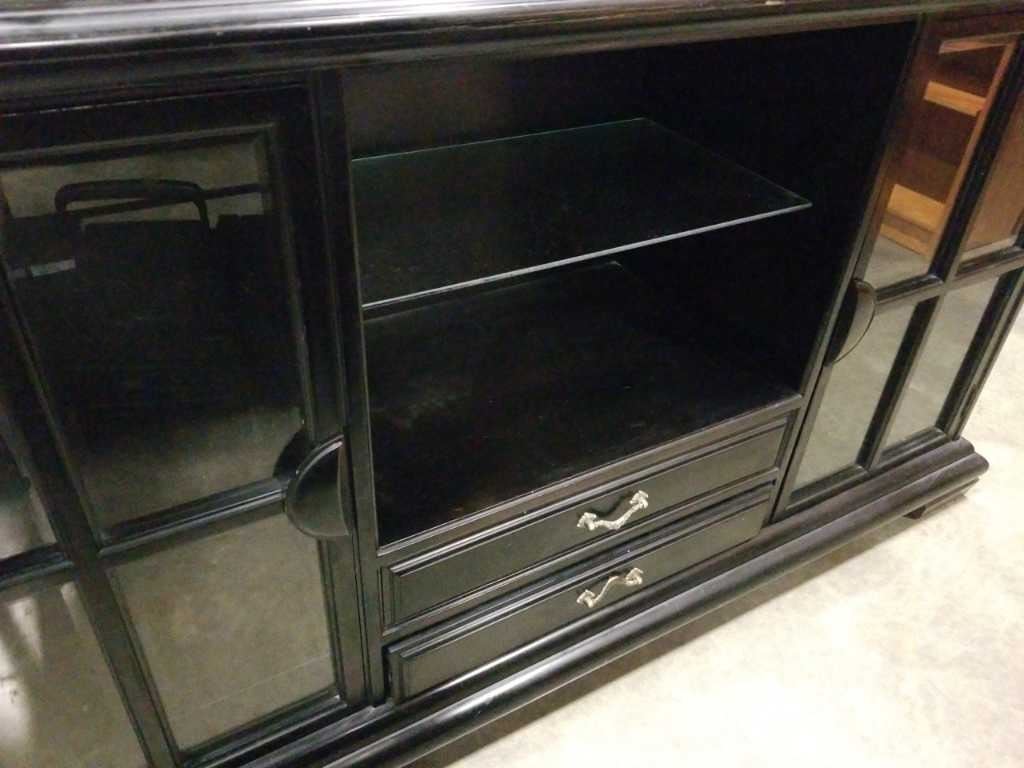 Black glasstop server with shelf