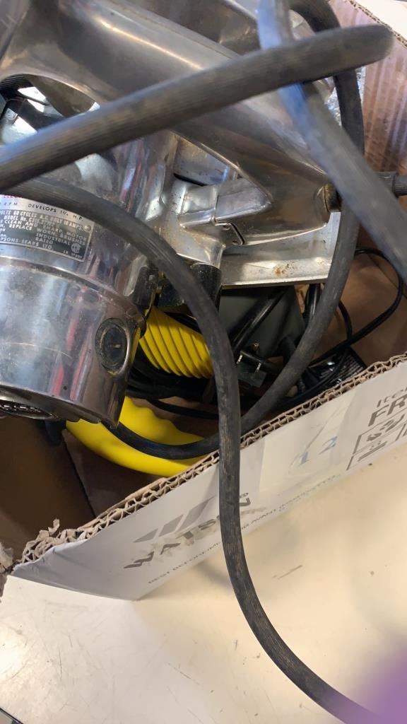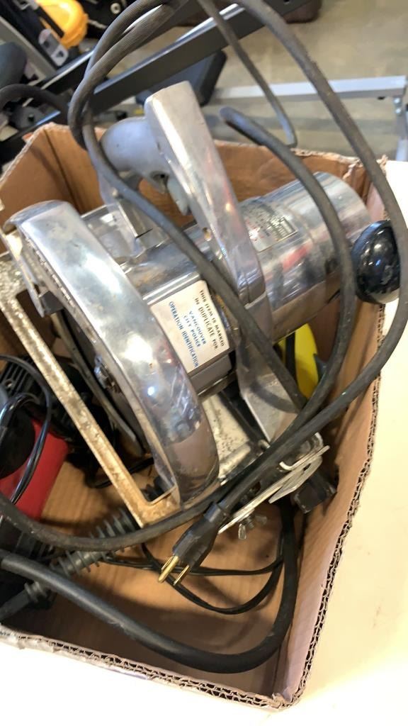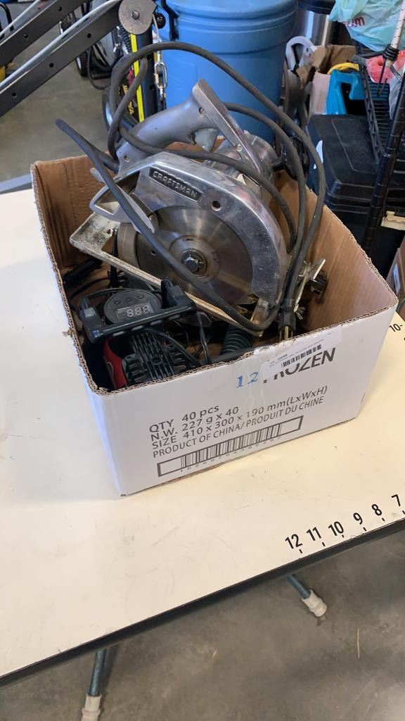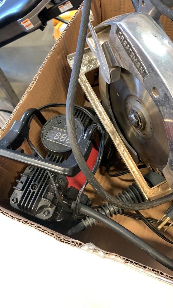 Box of circular saw, air pump and steamer