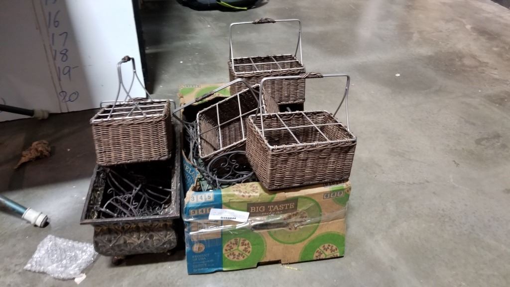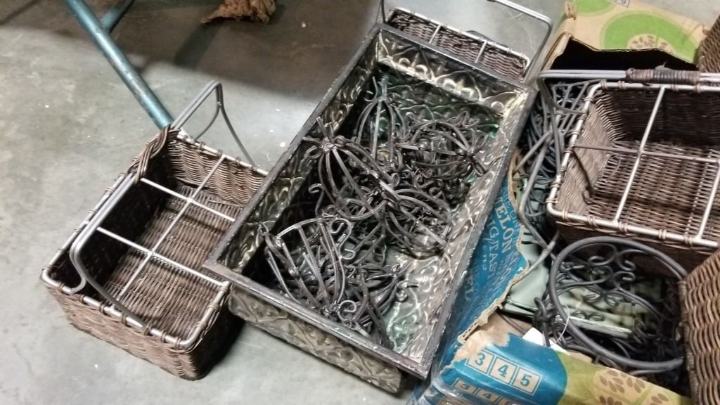 Box of decorative metal stands and décor