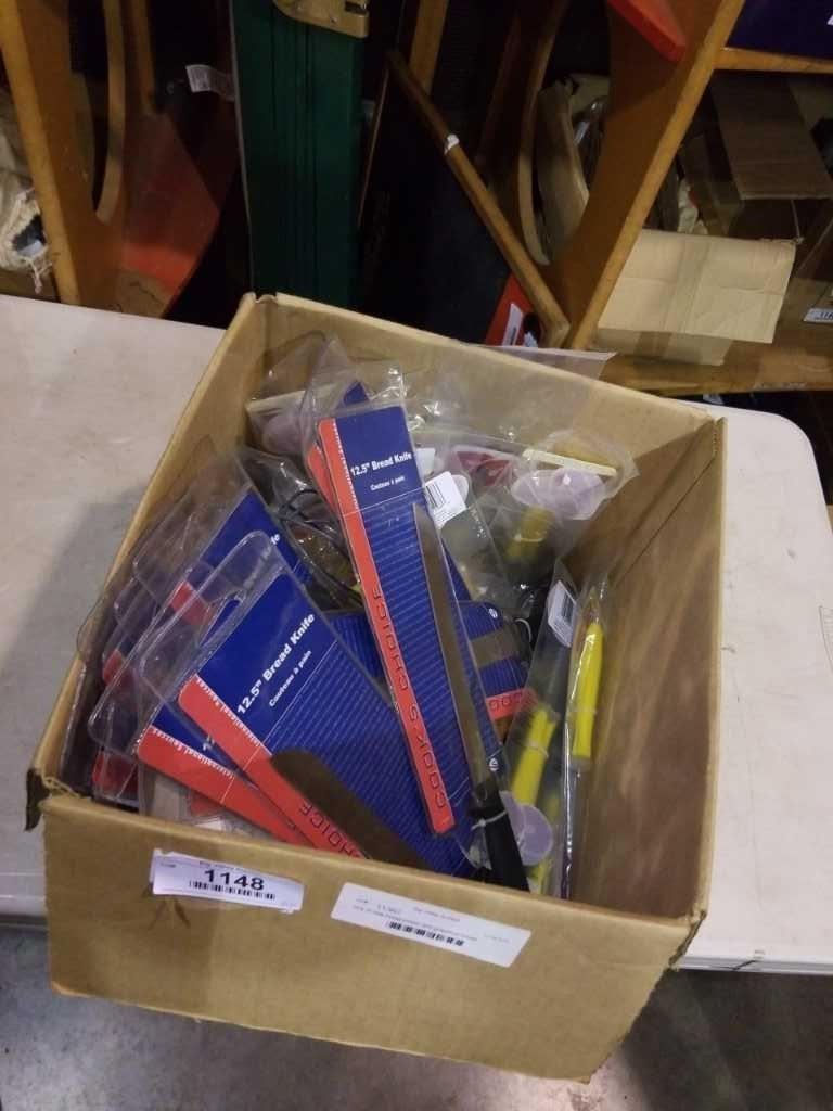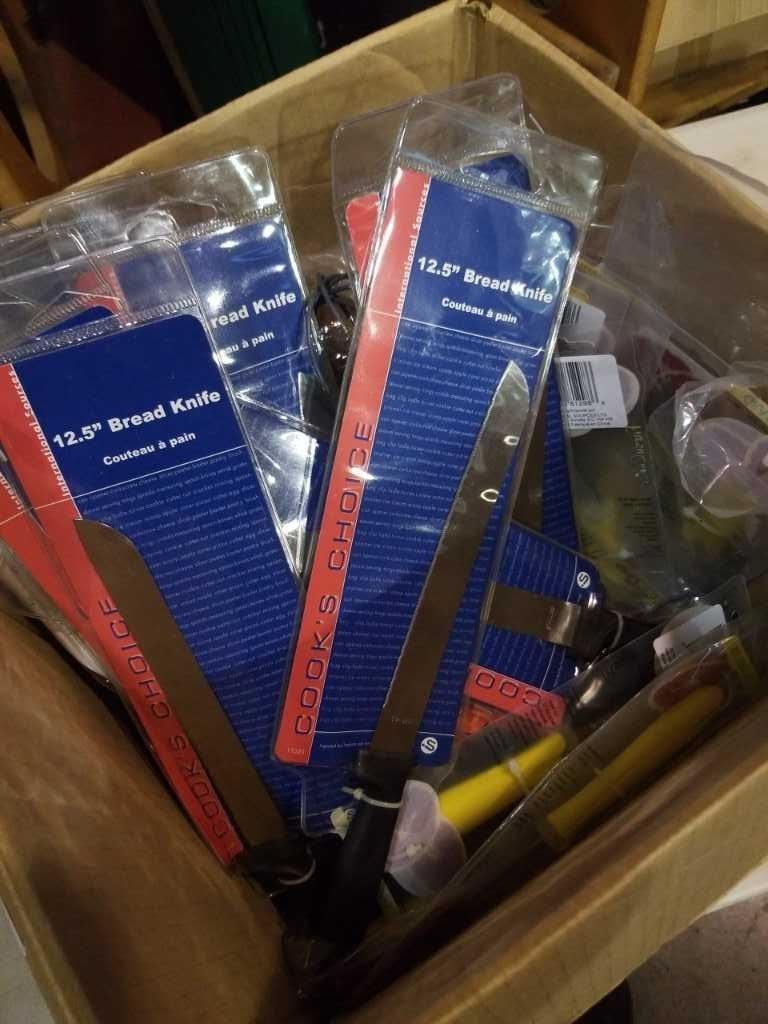 Box of new bread knives and grapefruit knives
