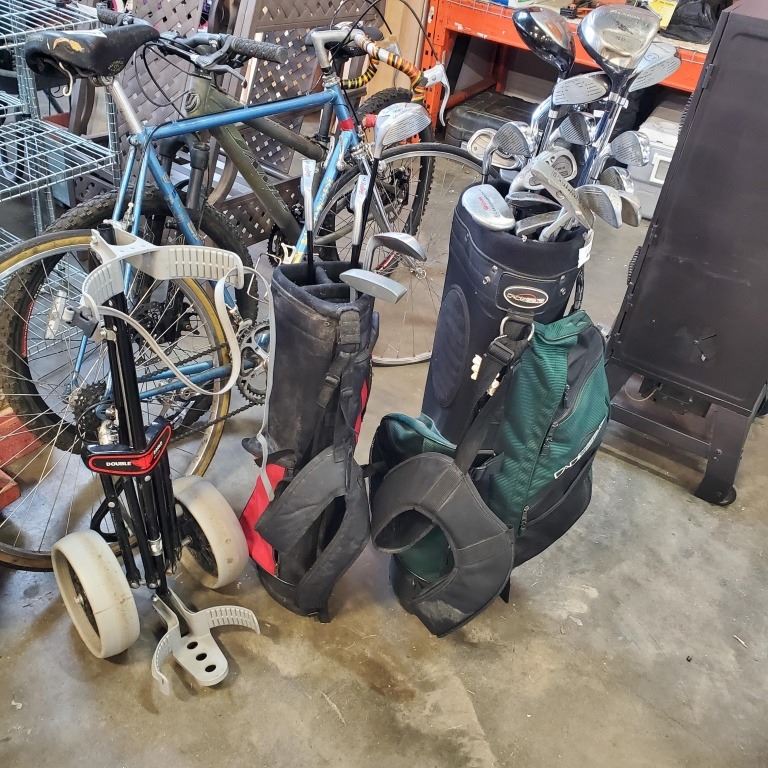 CADIE GEAR GOLF BAG WITH ASSORTED GOLF CLUBS, JUNIOR BAG AND CLUBS AND GOLF CART