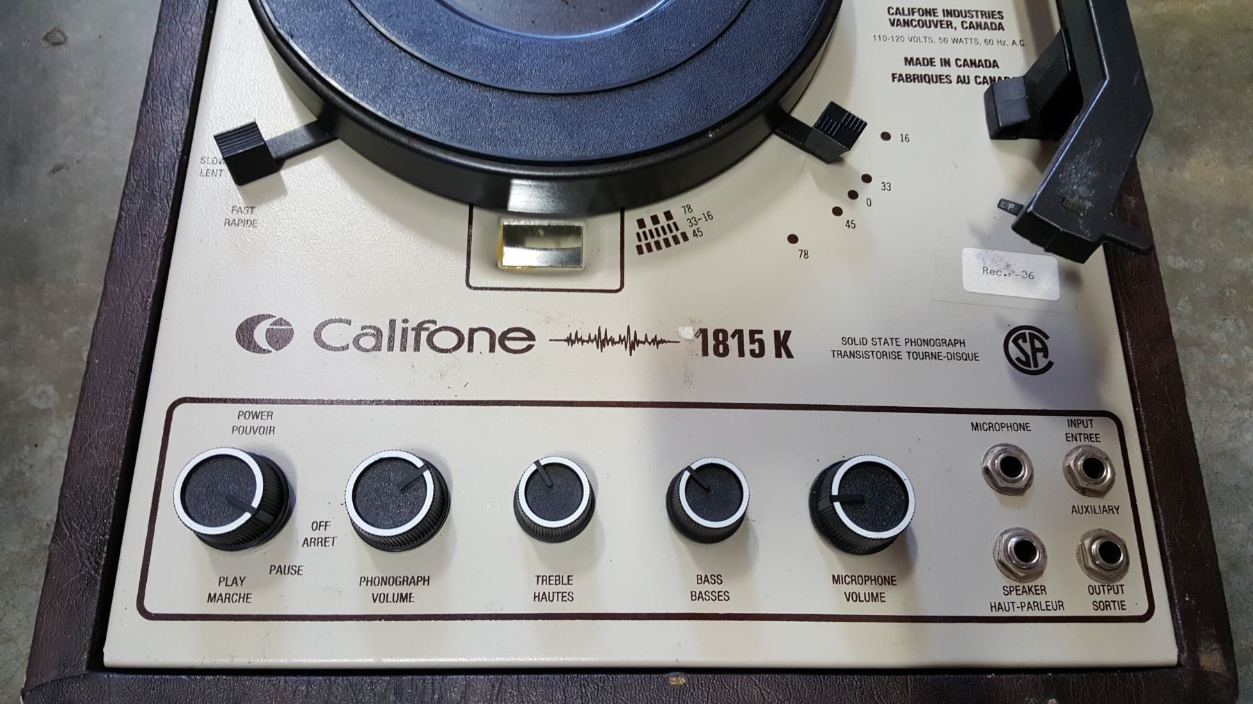 CALIFON 1815K RECORD PLAYER W/ SPEAKER