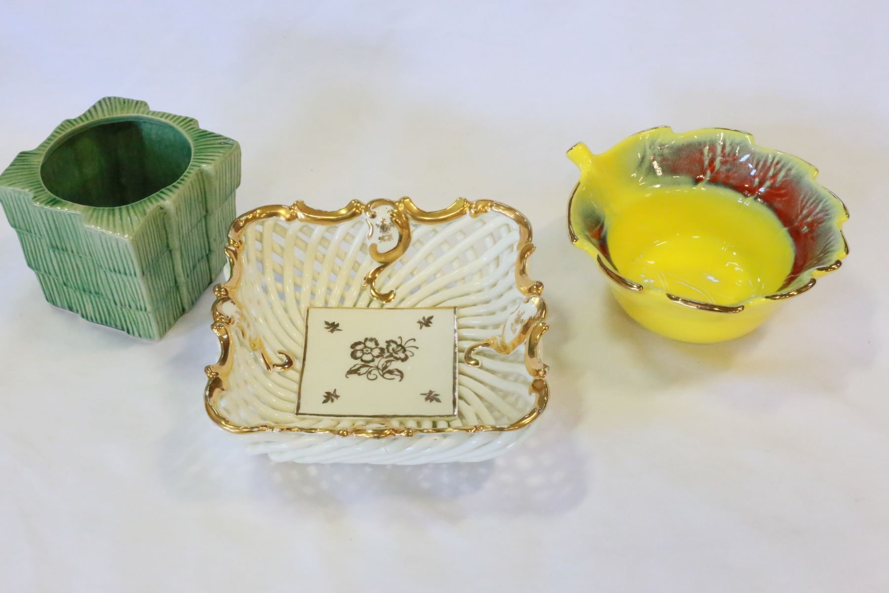 CALIFORNIA LEAF BOWL GREEN MCCOY PLANTER AND ITALIAN LATTICE DISH