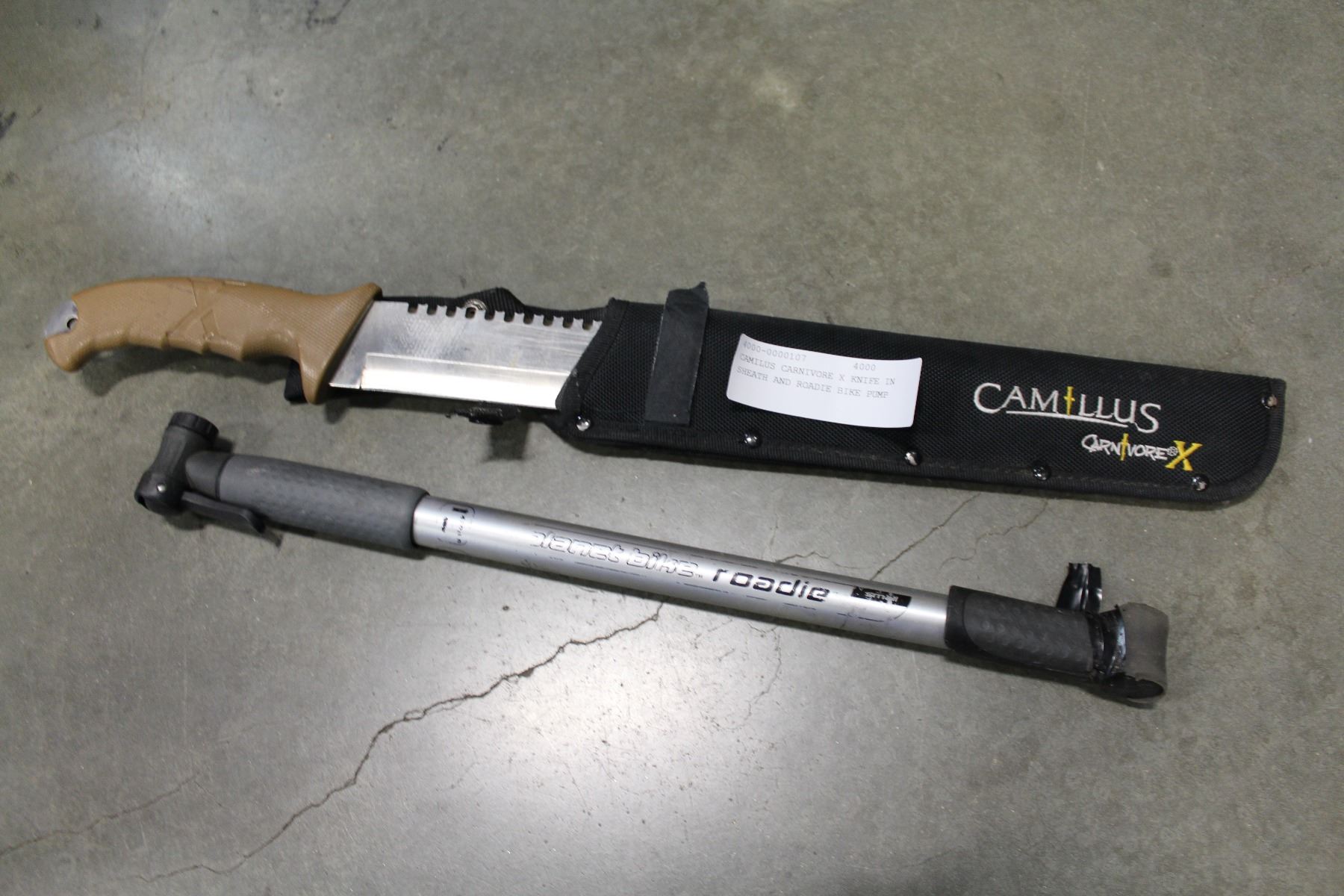 CAMILUS CARNIVORE X KNIFE IN SHEATH AND ROADIE BIKE PUMP