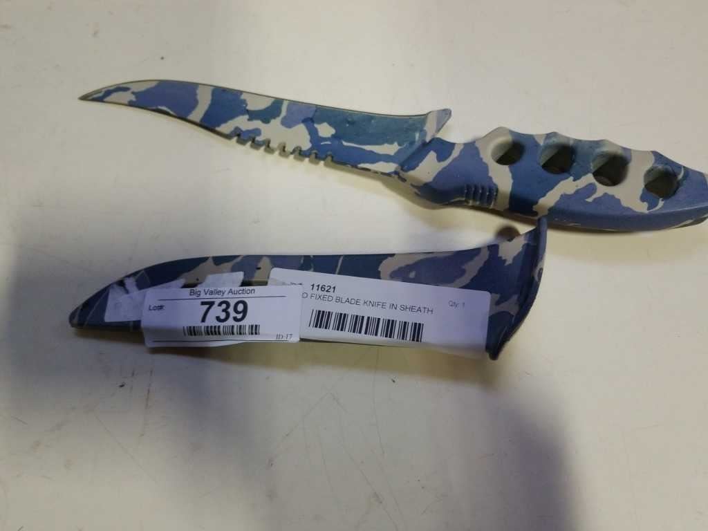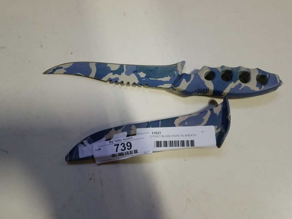 CAMO FIXED BLADE KNIFE IN SHEATH