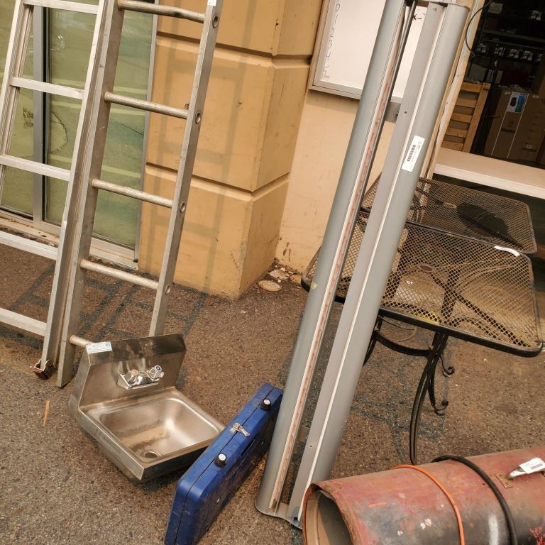 CAMP STOVE, STAINLESS SINK AND RETRACTABLE SIGN