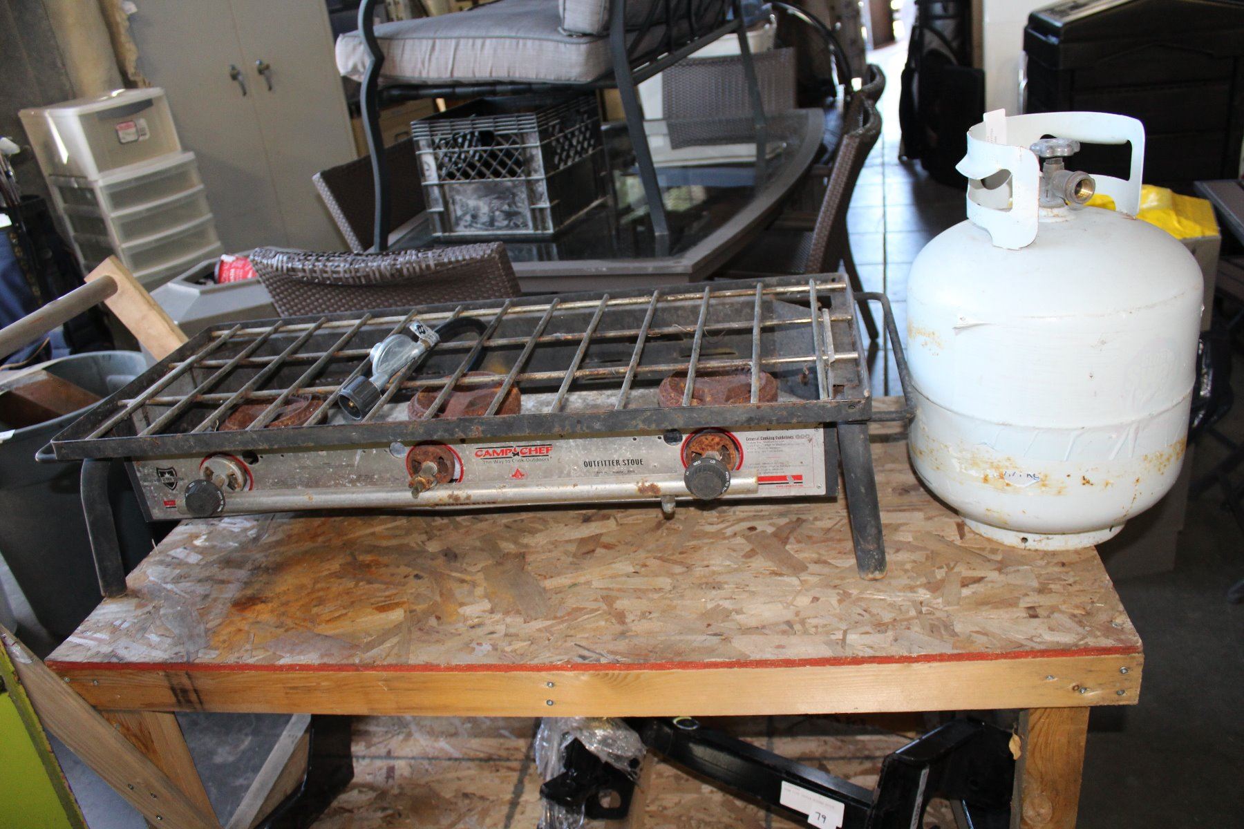 CAMPCHEF 3 BURNER OUTFITTER STOVE WITH PROPANE TANK