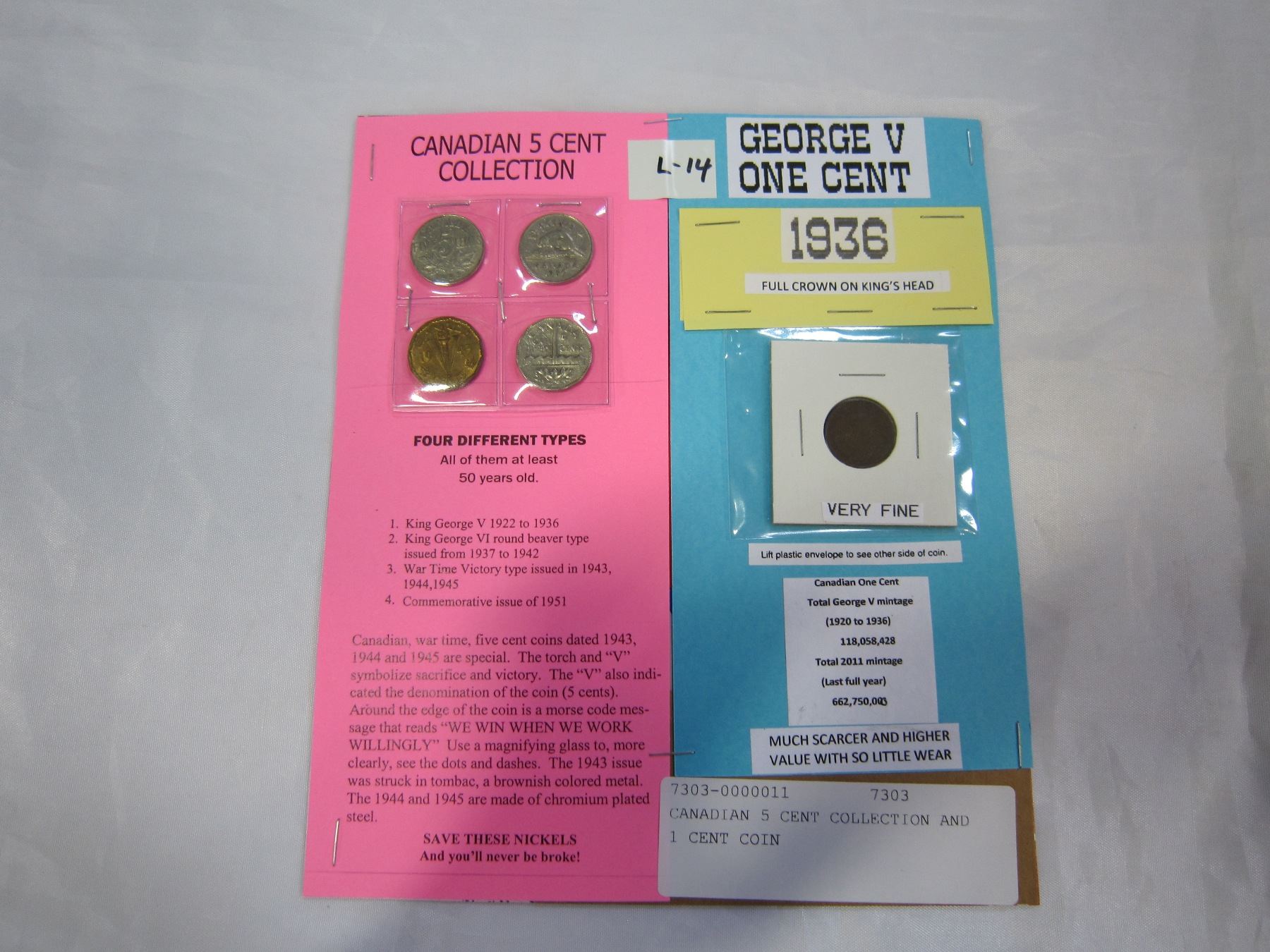 CANADIAN 5 CENT COLLECTION AND 1 CENT COIN