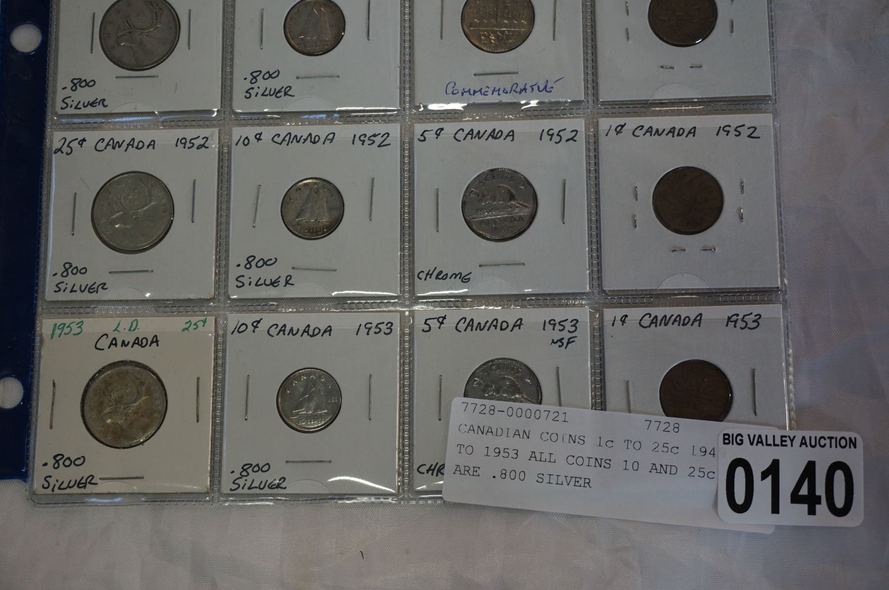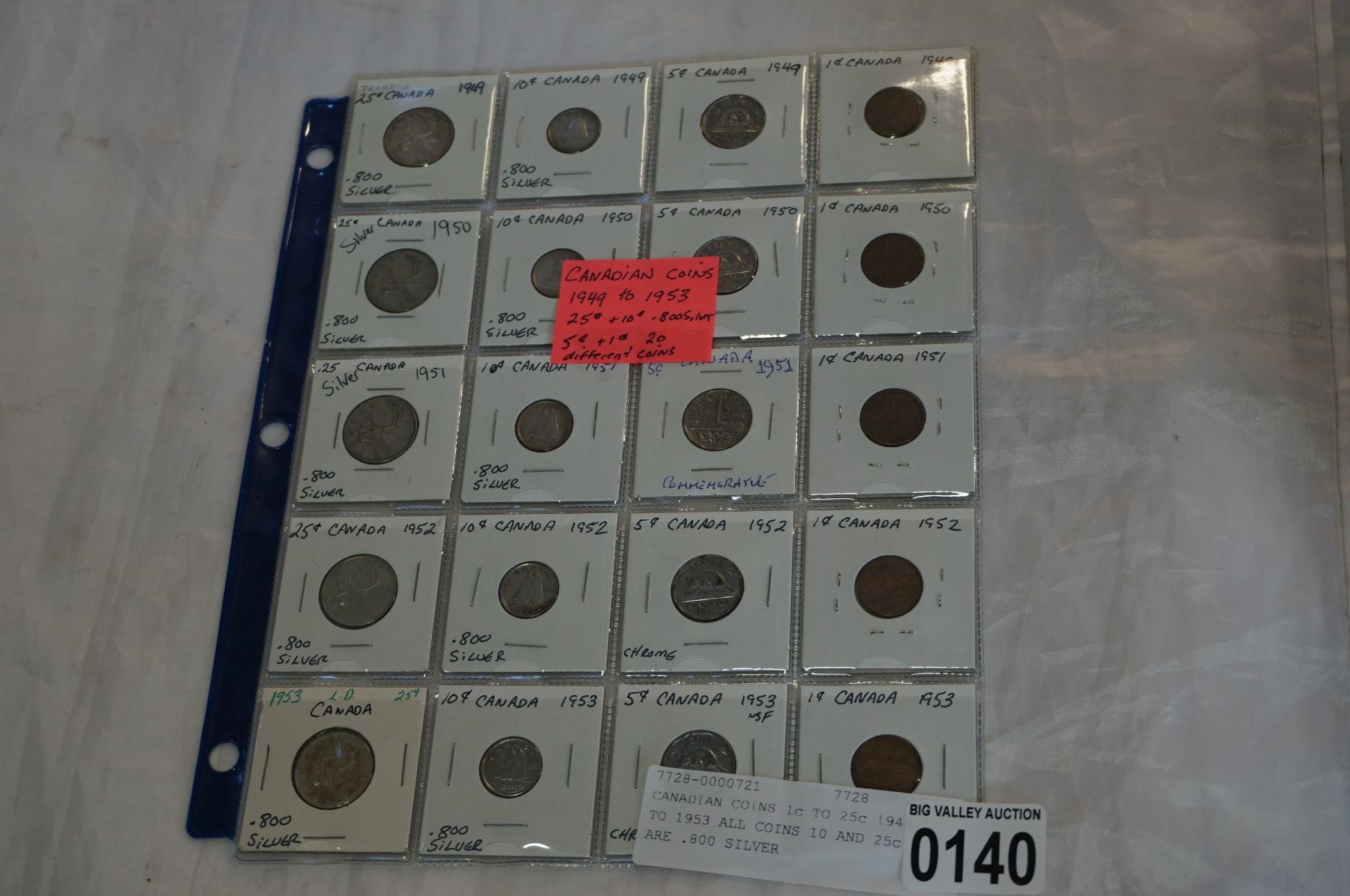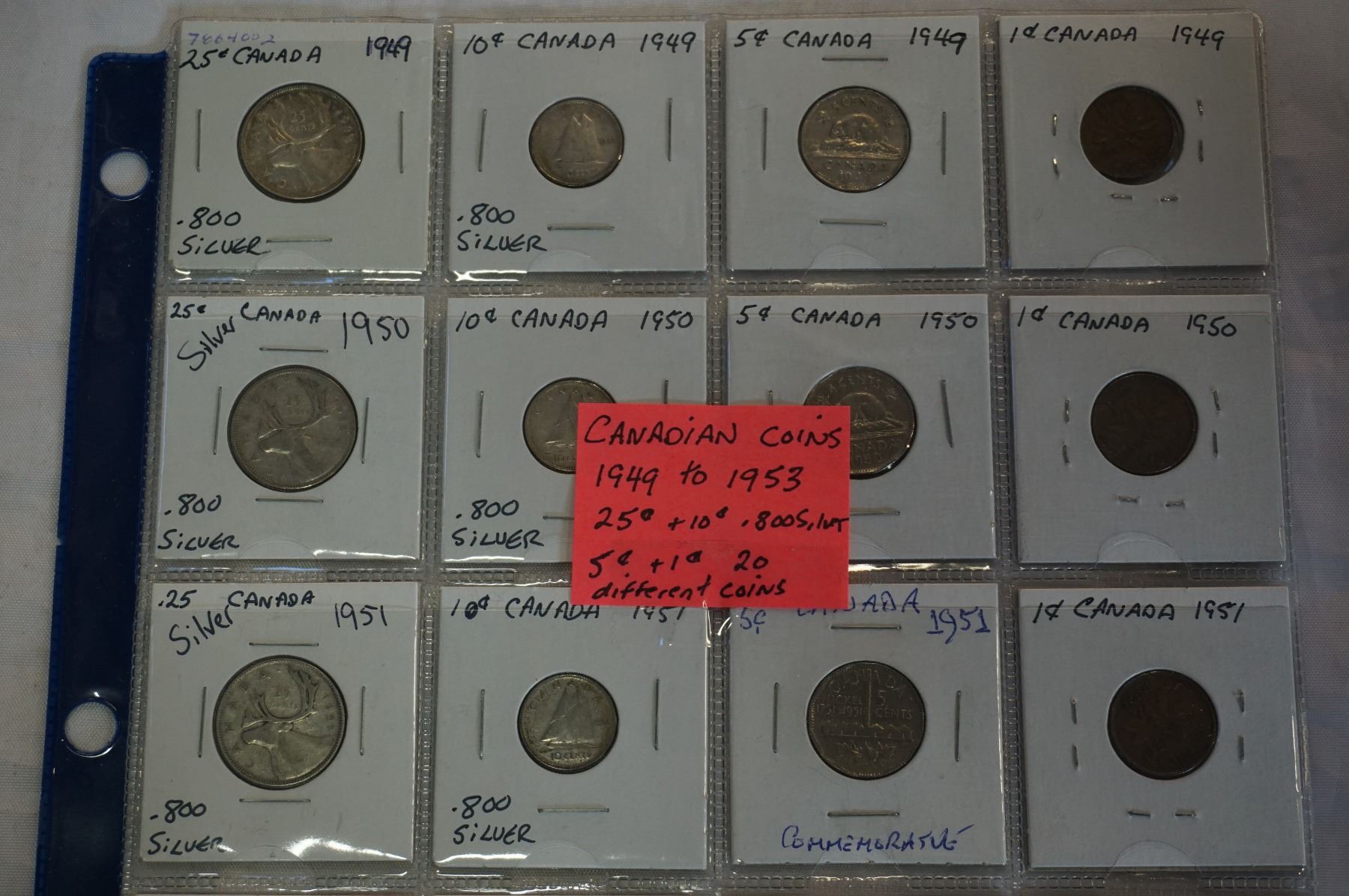 CANADIAN COINS 1c TO 25c 1949 TO 1953 ALL COINS 10 AND 25c ARE .800 SILVER