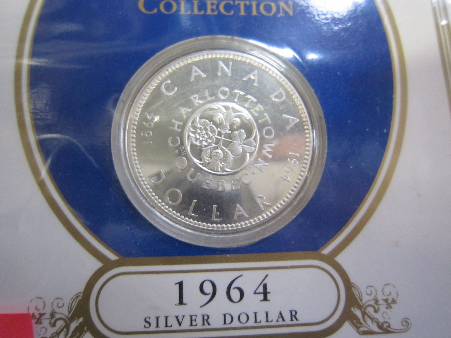 CANADIAN DAY OF ISSUE SILVER $1 CHARLOTTETOWN 100TH ANNIVERSARY CONFERENCE COIN PLUS 5 CENT STAMP ISSUED JULY 29 1964 .800 SILVER