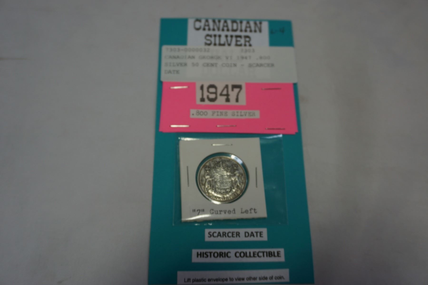 CANADIAN GEORGE VI 1947 .800 SILVER 50 CENT COIN - SCARCER DATE