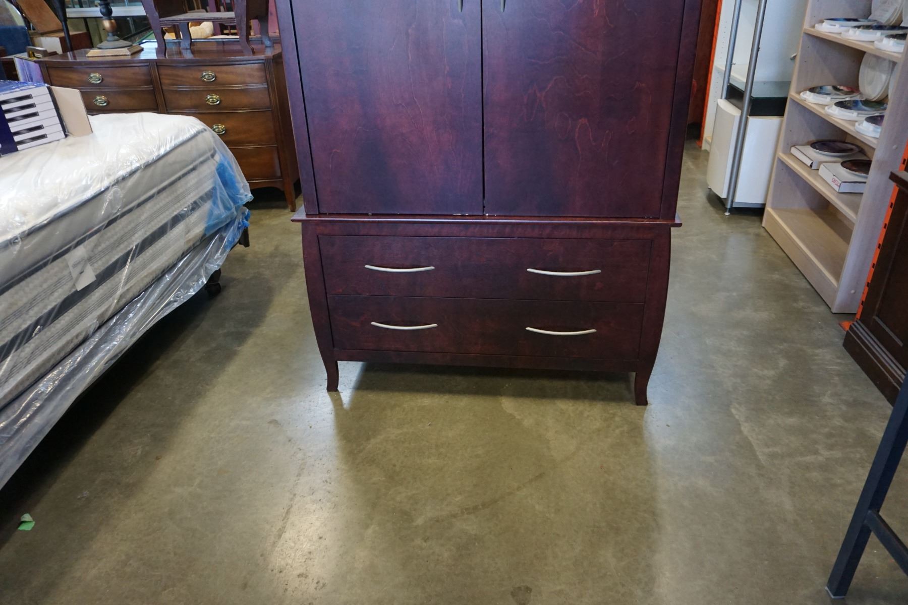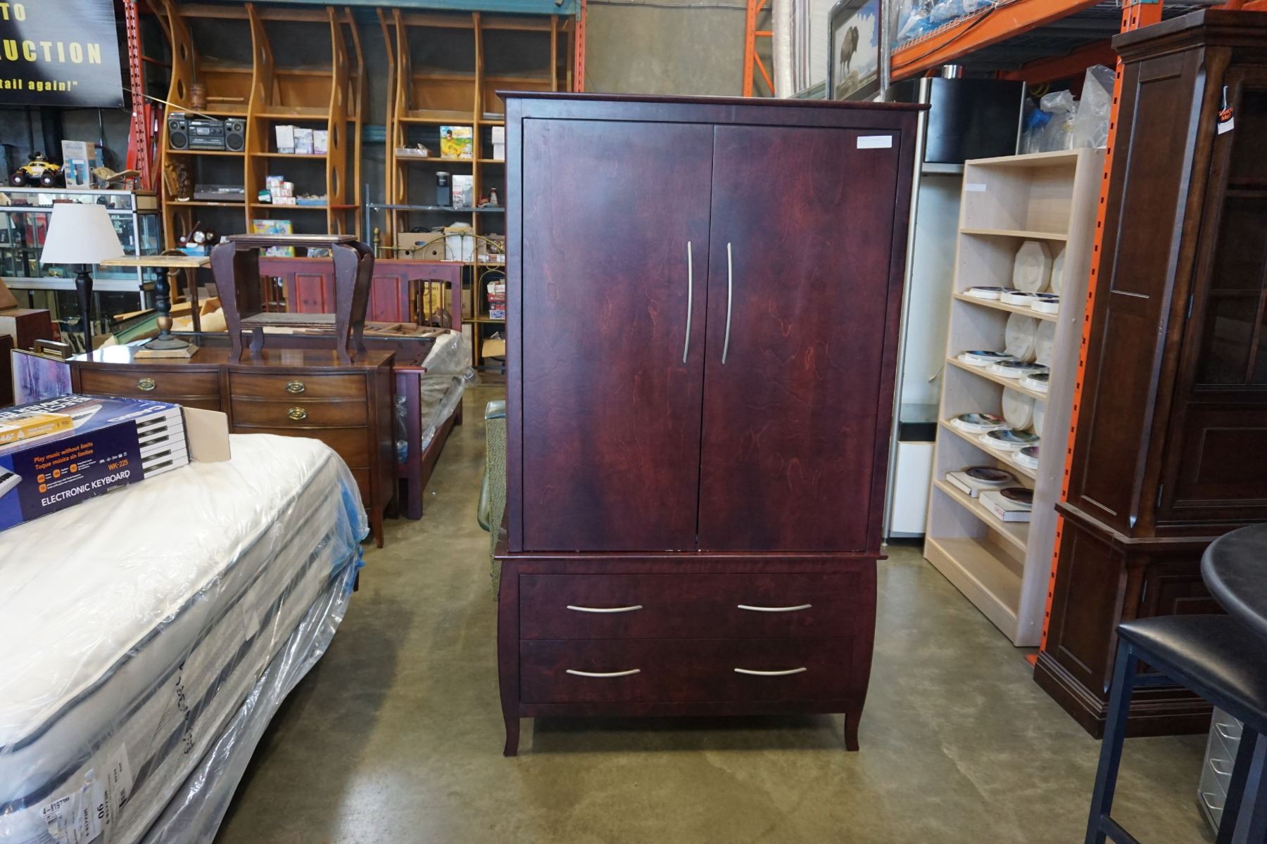 CANADIAN MADE SOLID MAPLE 2 PIECE WARDROBE CABINET WITH SHELF AND CLOTHES BAR, DARK MAHOGANY FINISH