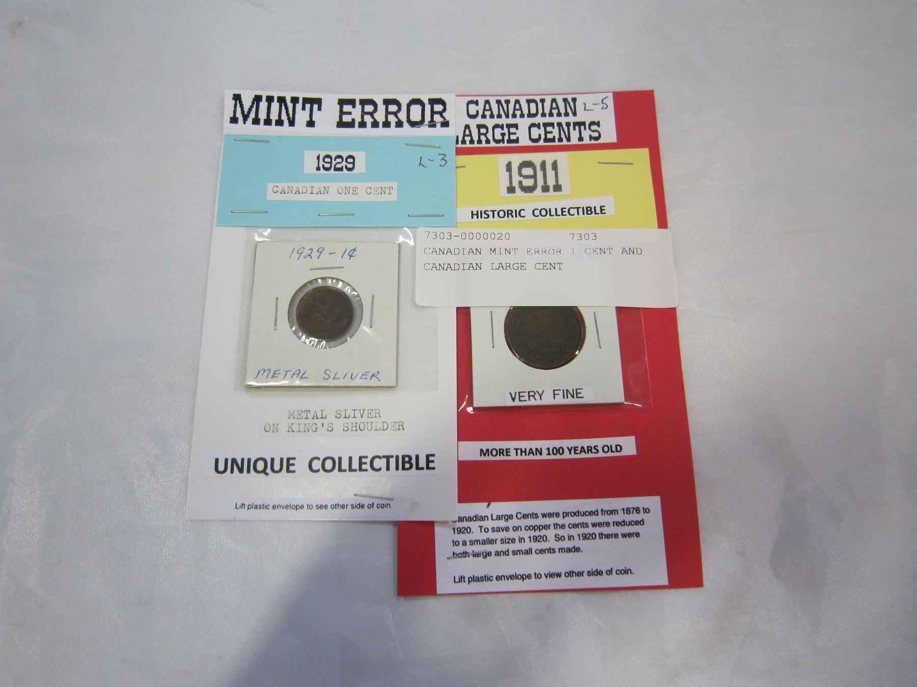 CANADIAN MINT ERROR 1 CENT AND CANADIAN LARGE CENT