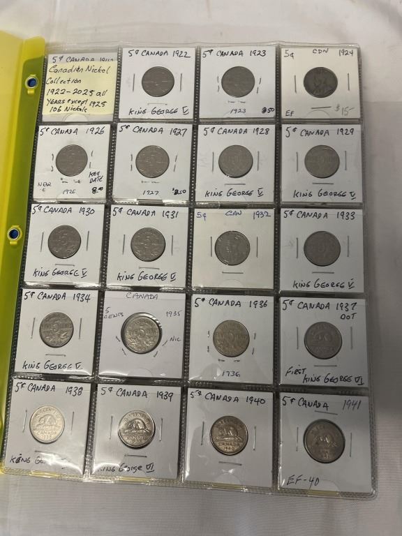 CANADIAN NICKELS COLLECTION 1922-2025 106 NICKELS ALL YEARS EXCEPT 1925