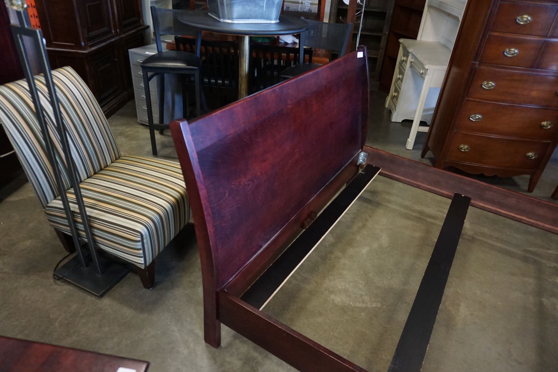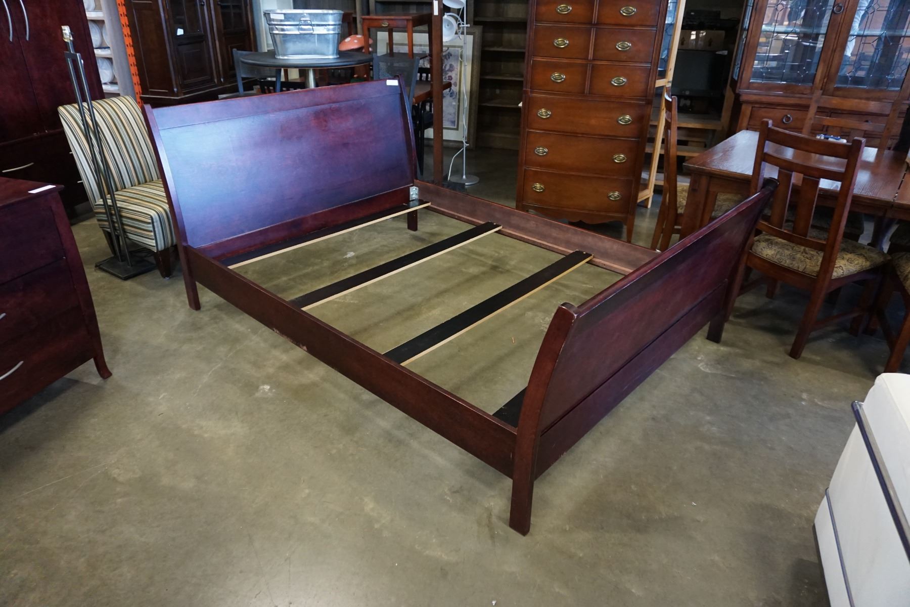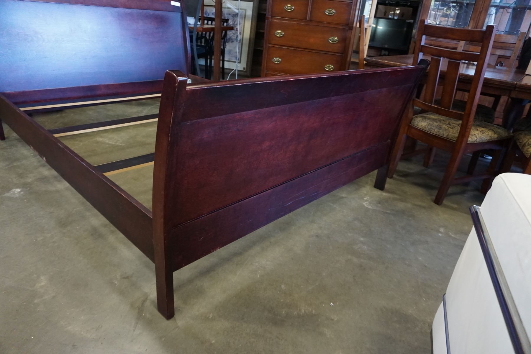CANADIOAN MADE SOLID MAPLE QUEENSIZE SLEIGH BEDFRAME WITH PAIR OF 2 DRAWER NIGHTSTANDS