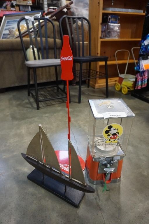 CANDY DISPENSER, COCA COLA STAND AND BOAT FIGURE