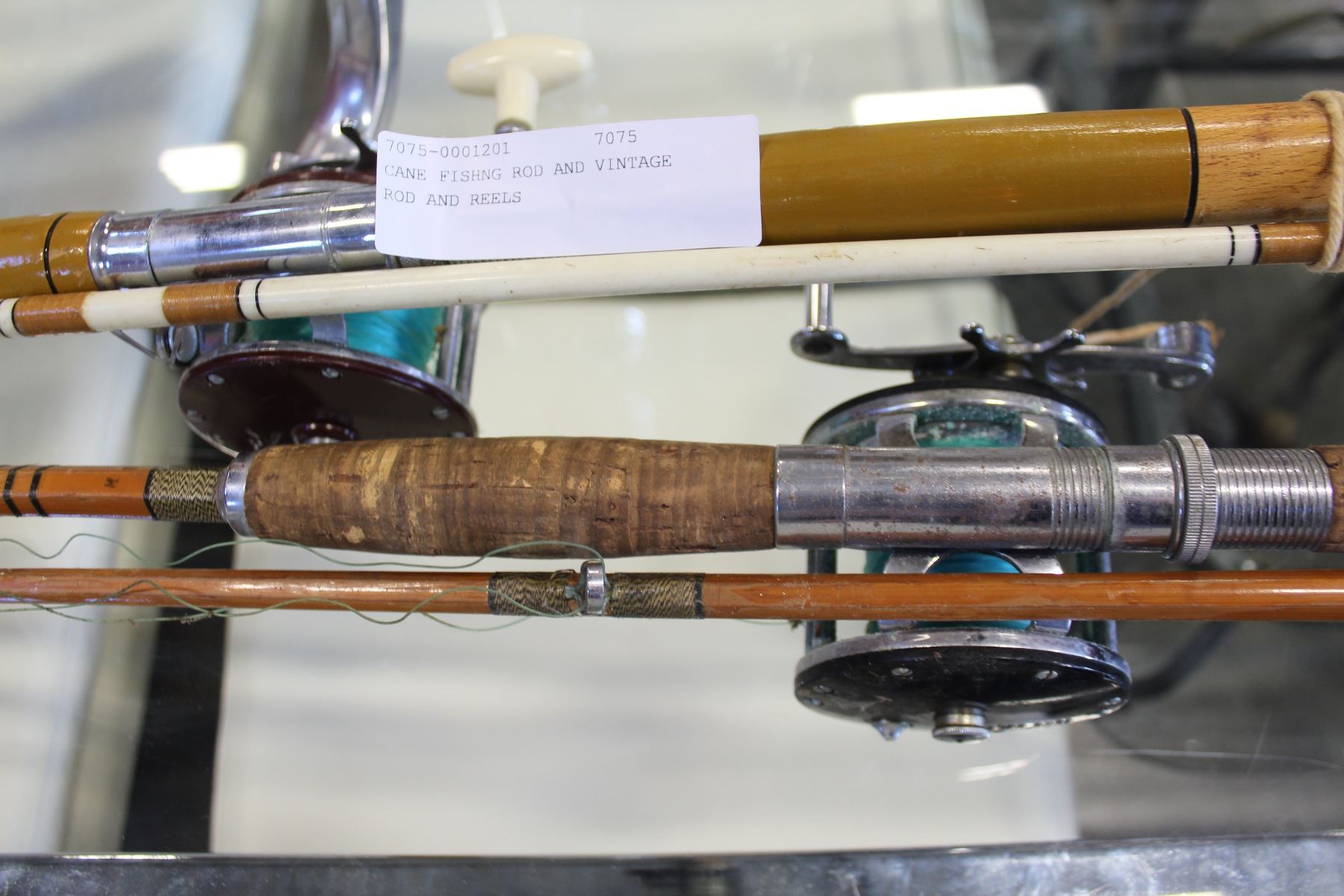 CANE FISHNG ROD AND VINTAGE ROD AND REELS