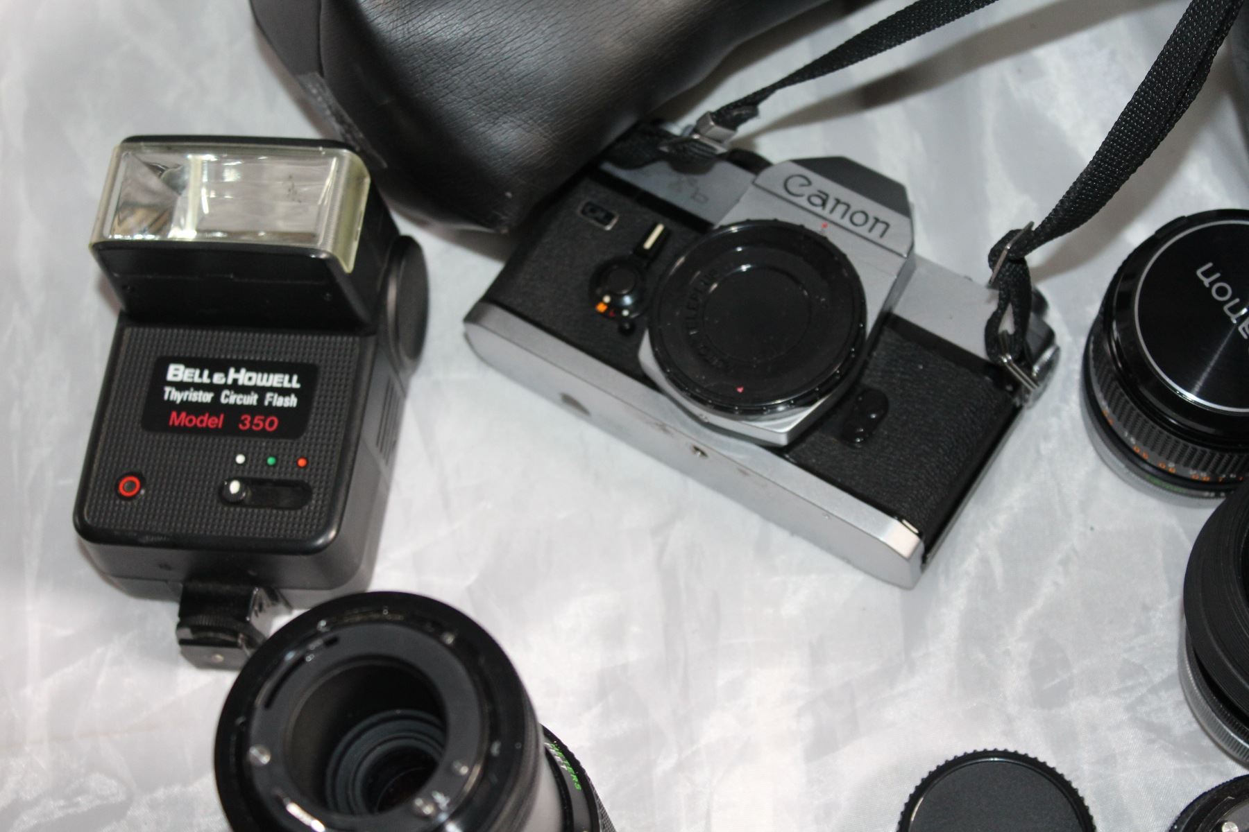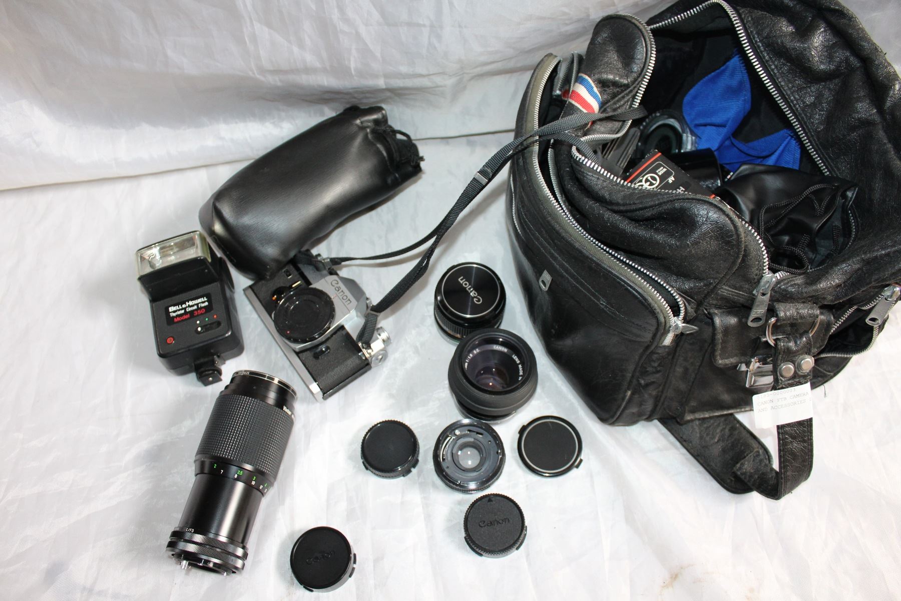 CANON FTB CAMERA WITH LENSES AND ACCESSORIES IN BAG