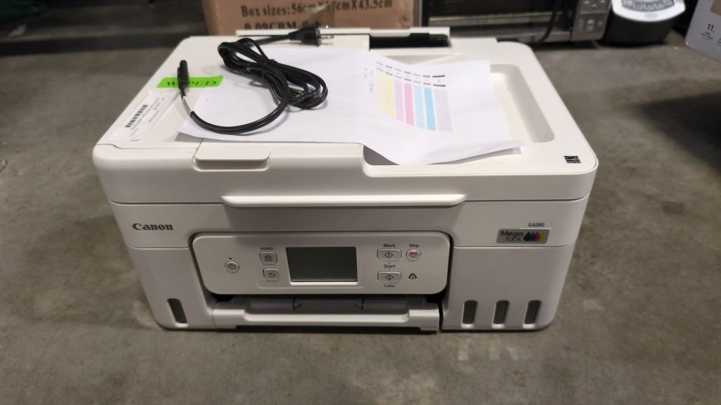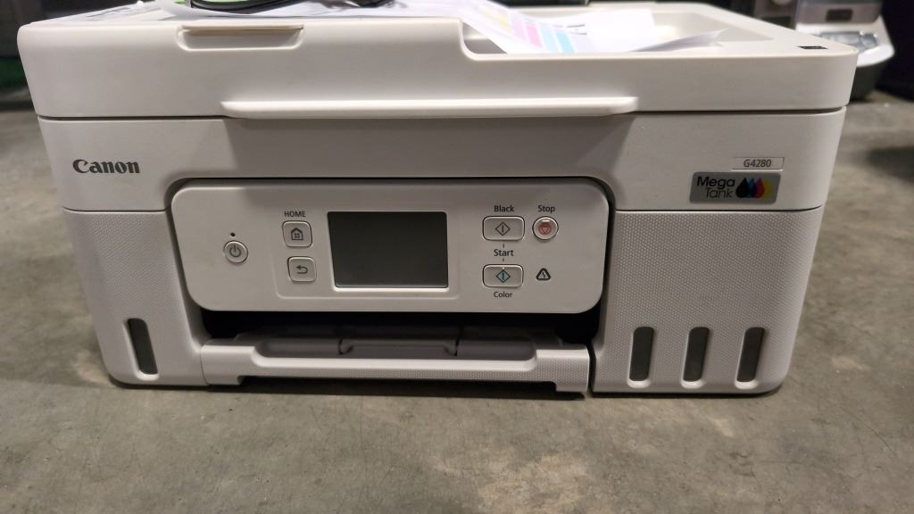CANON PIXMA MEGA TANK G4280 PRINTER TESTED THE END WORKING 5 PAGES PRINTED.