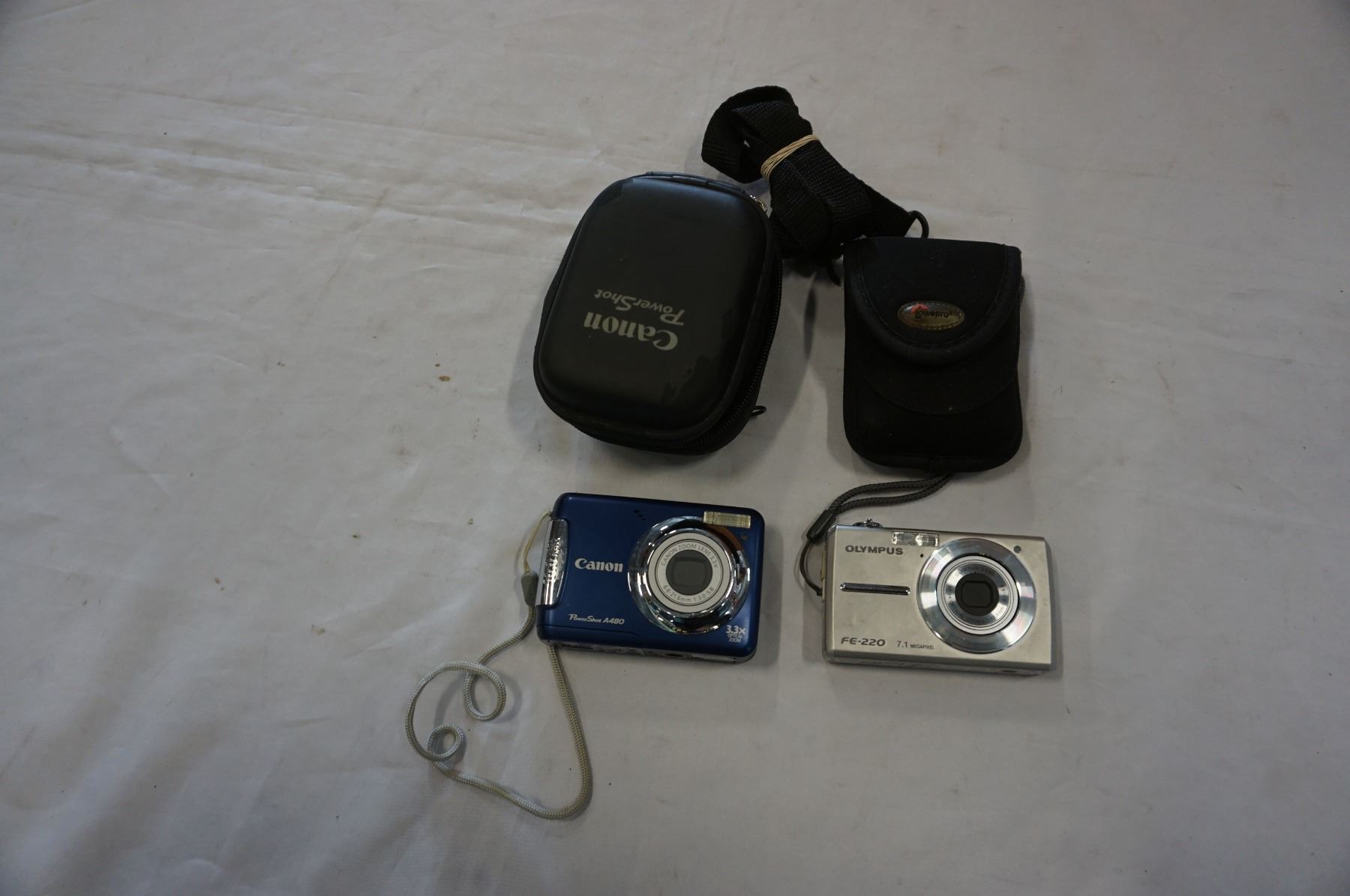CANON POWERSHOT A480 10 MEGA PIXEL W/ CASE AND OLYMPUS FE-220 7.1 MEGA PIXEL DIGITAL CAMERA
