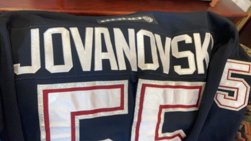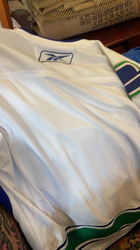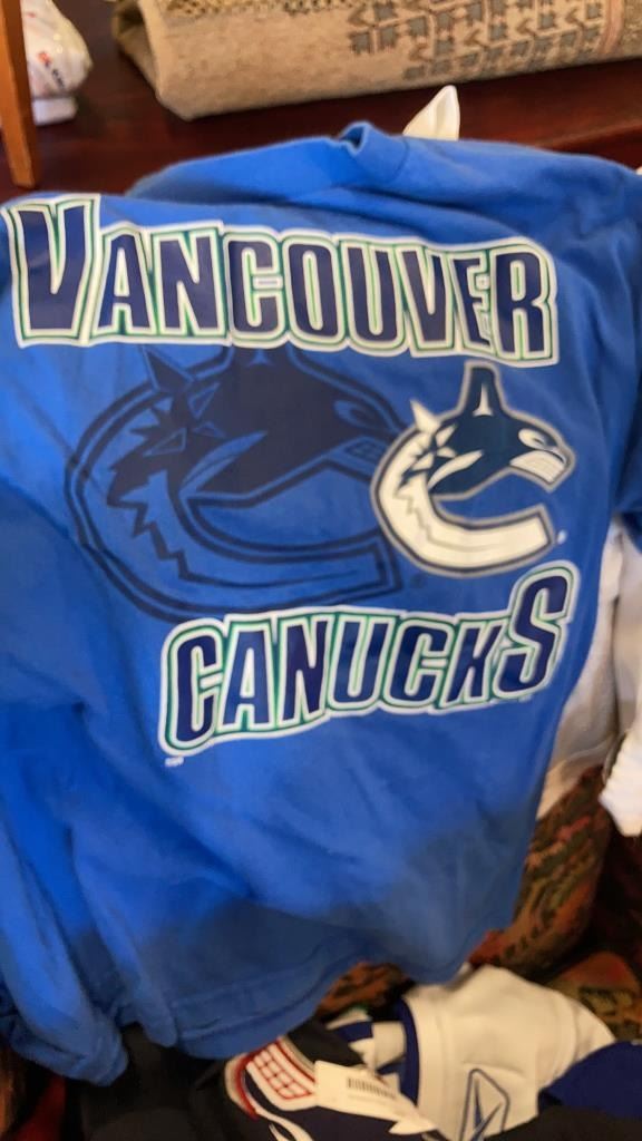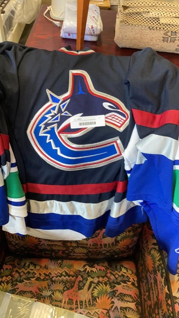 CANUCKS SIZE LARGE JOVANOVSKI JERSEY, CANUCKS JERSEY AND CSHIRT, TITLE BOXING SHORTS AND NFL SIZE M