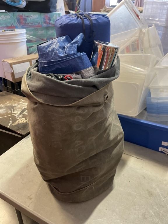 CANVAS BAG FULL OF CAMPING SUPPLIES