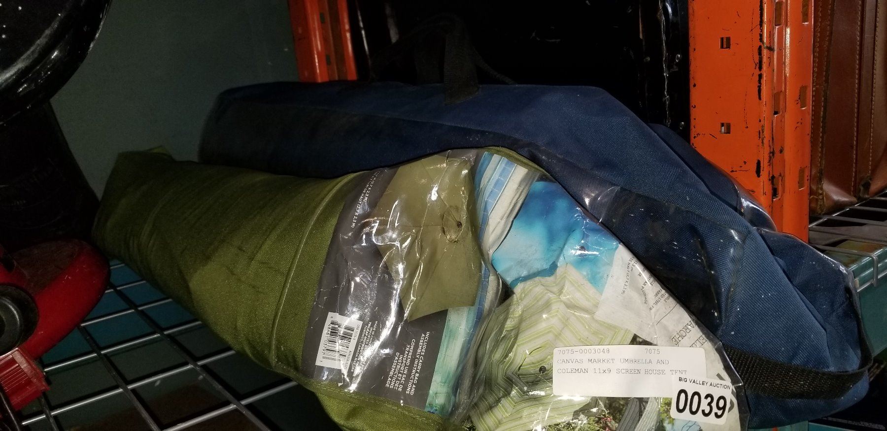 CANVAS MARKET UMBRELLA AND COLEMAN 11x9 SCREEN HOUSE TENT
