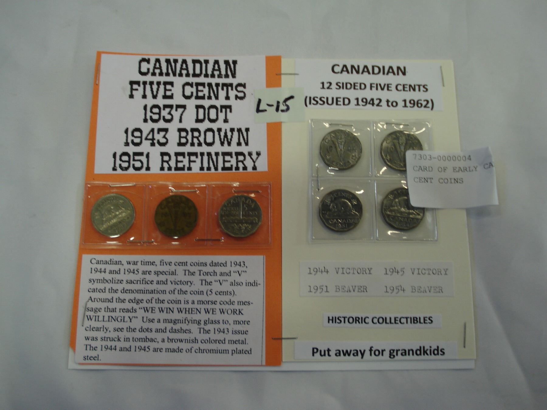 CARD OF EARLY CANADIAN FIVE CENT COINS