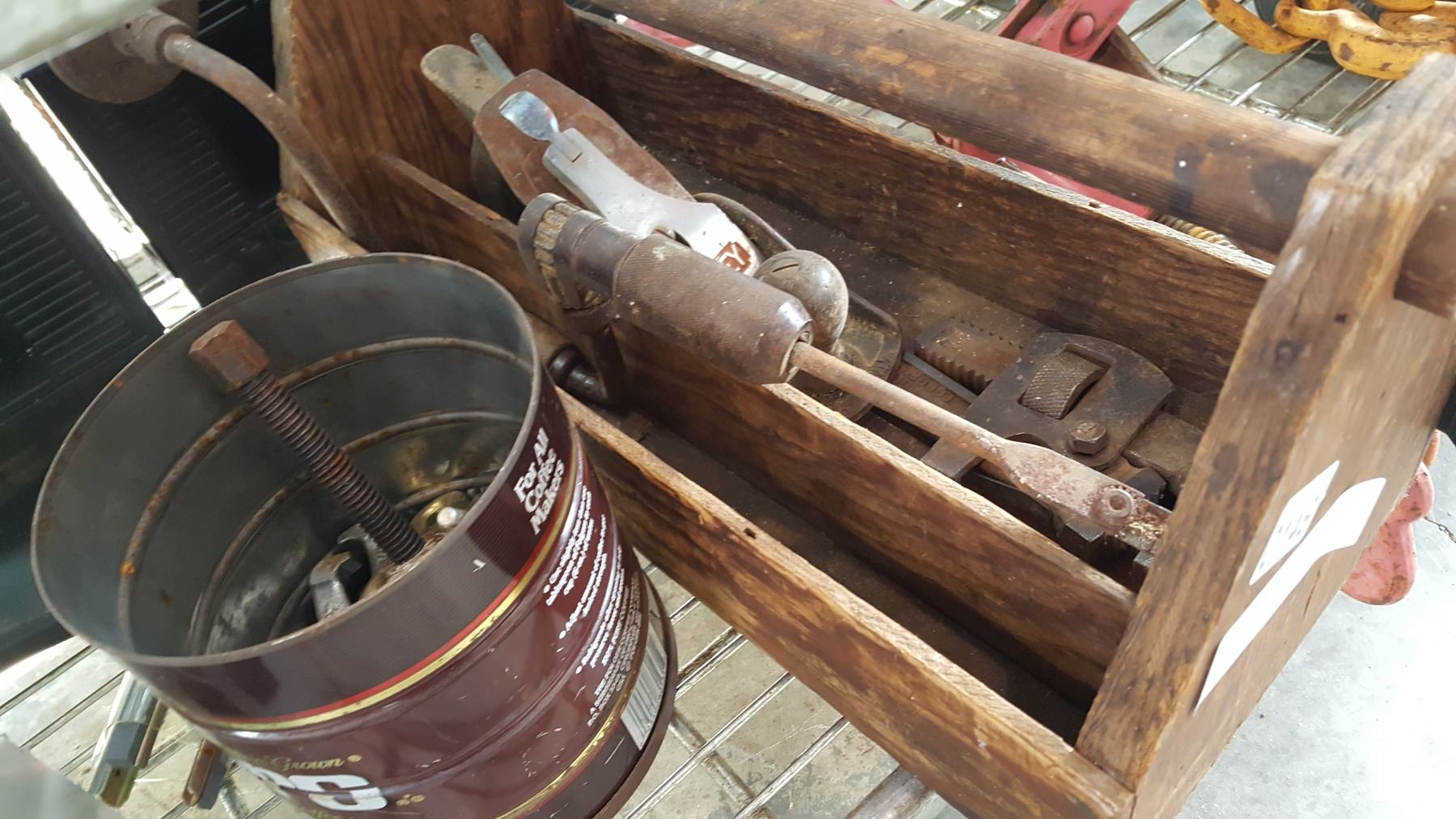 CARPENTERS BOX W/ VINTAGE TOOLS