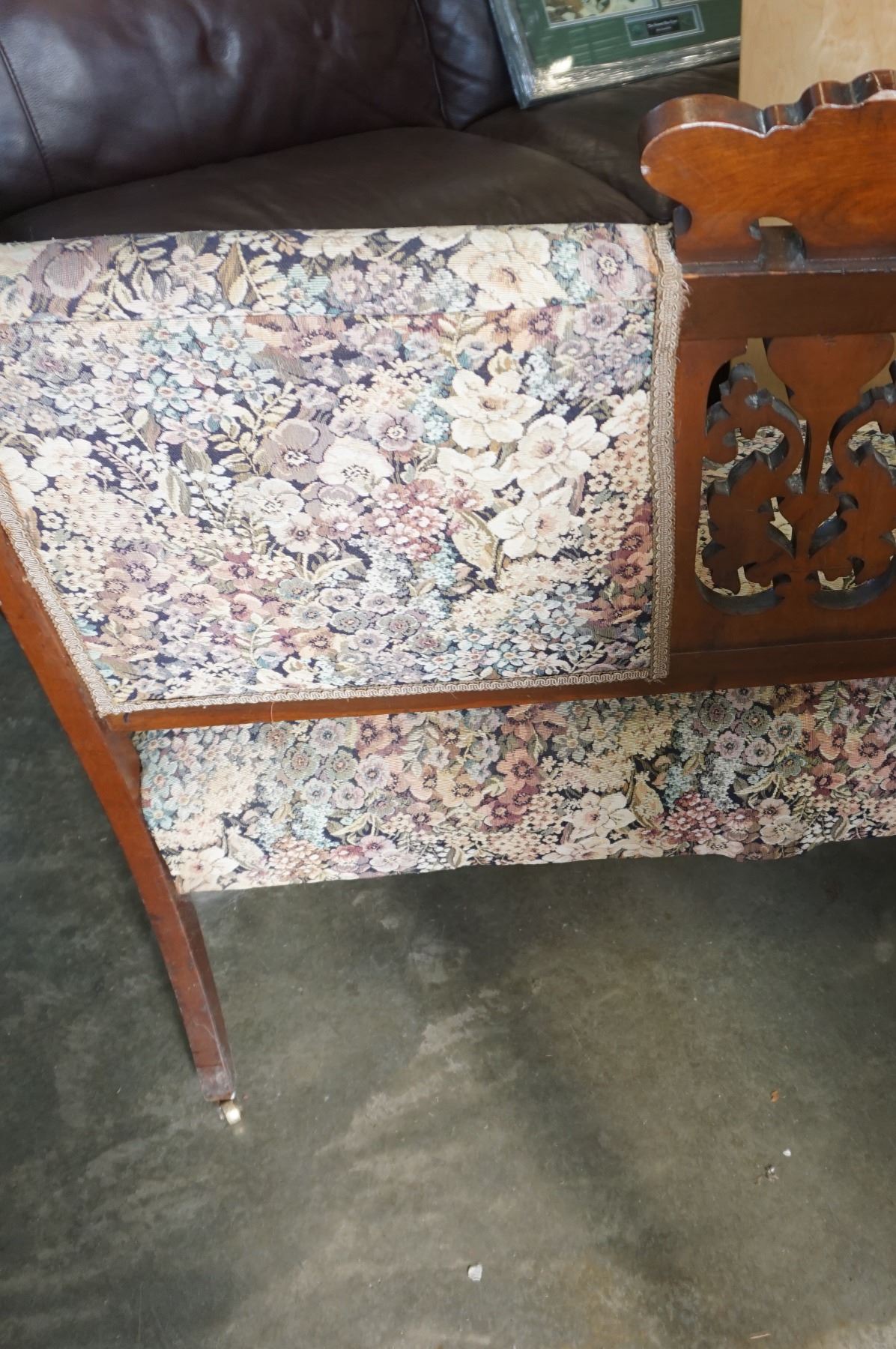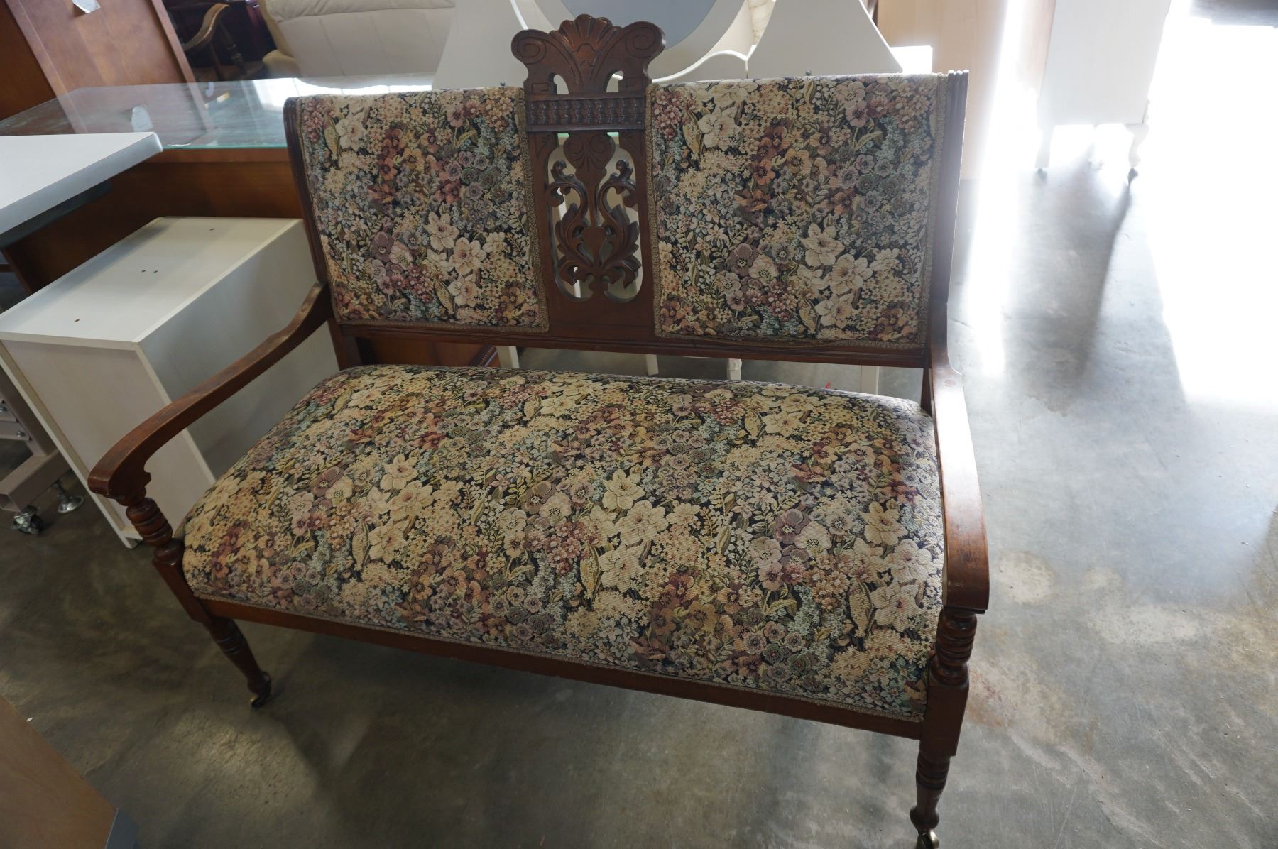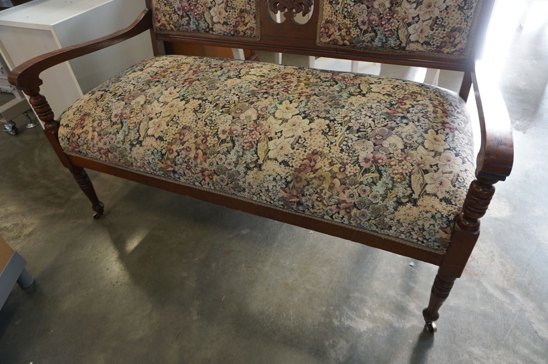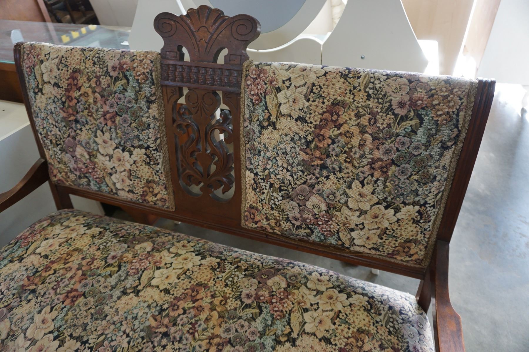 CARVED AND UPHOLSTERED BENCH