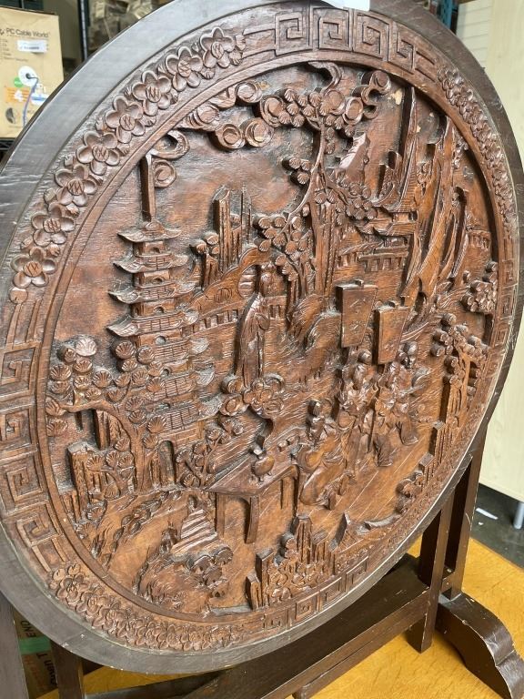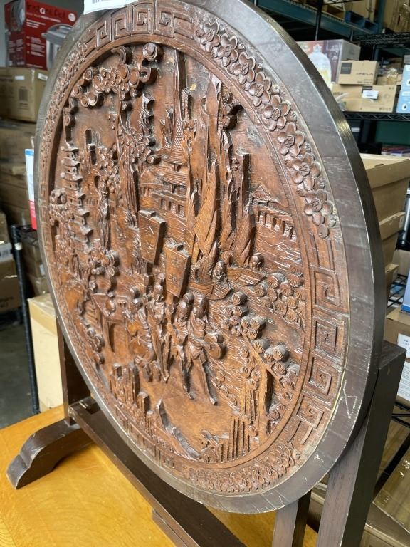 CARVED ANTIQUE FOLDING TABLE