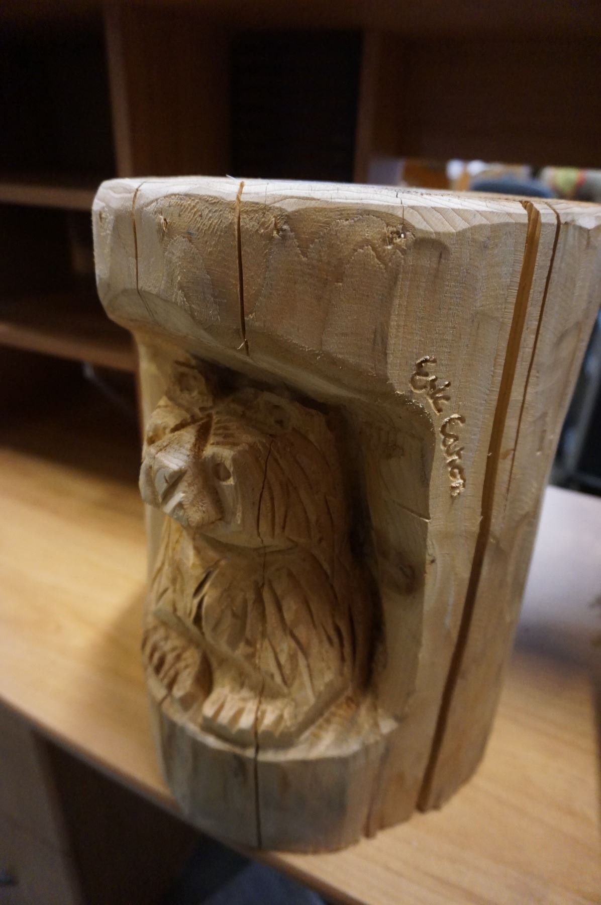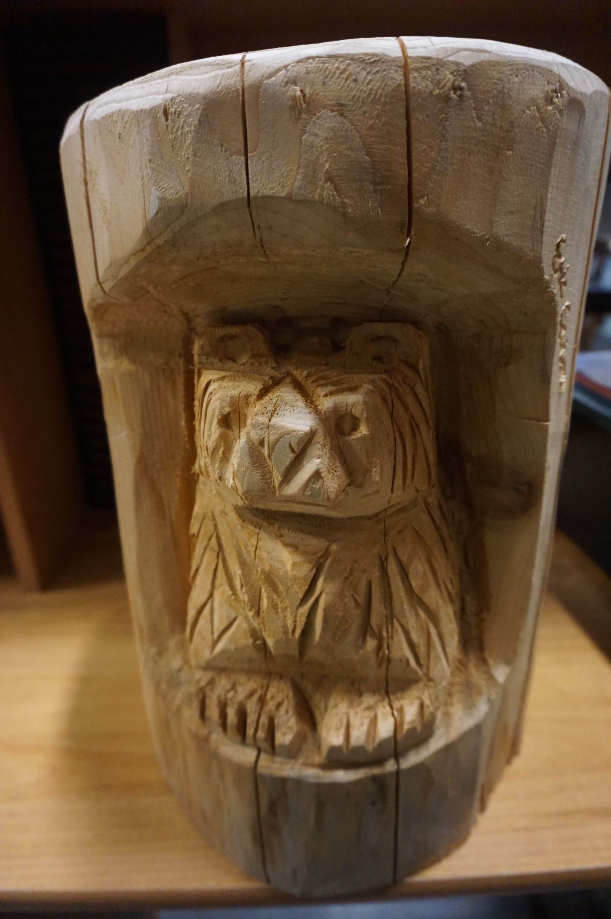CARVED BEAR THROUGH LOG