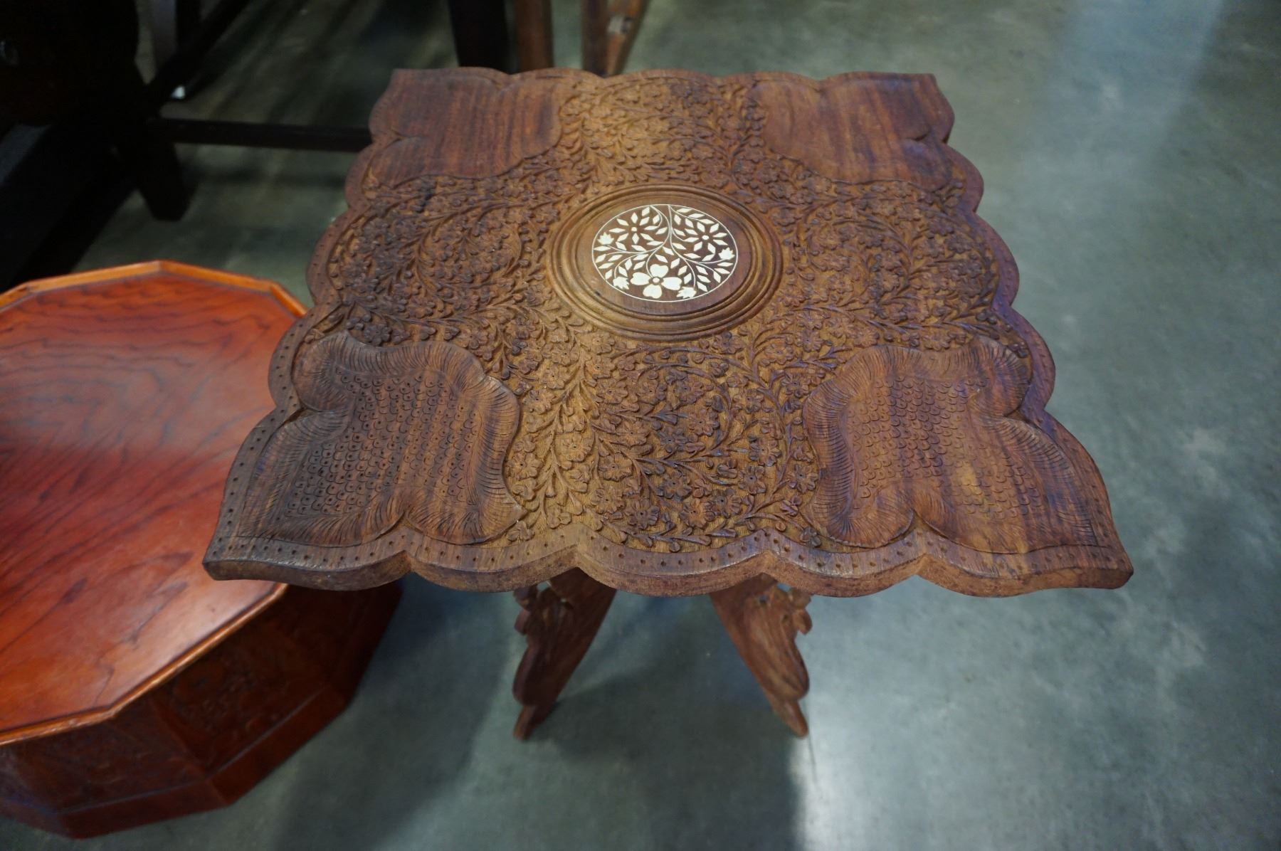 CARVED INLAID END TABLE
