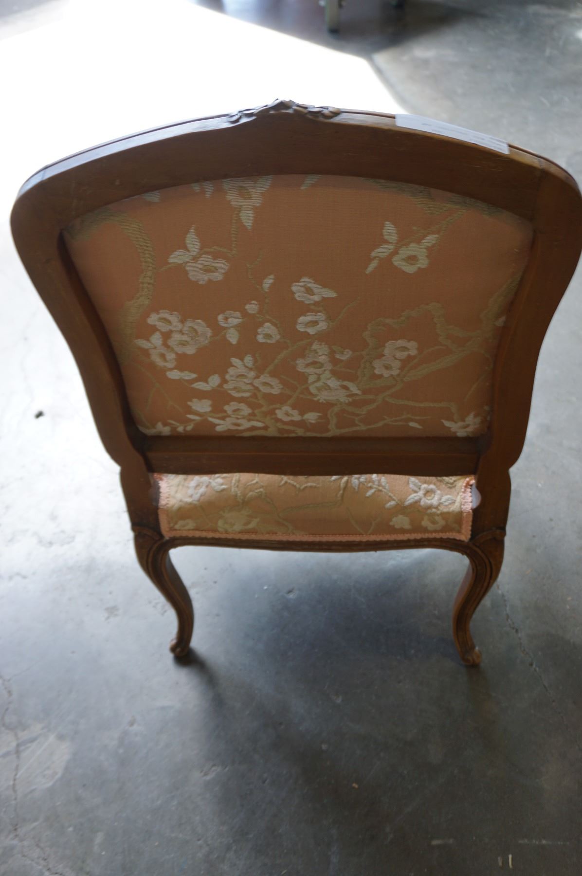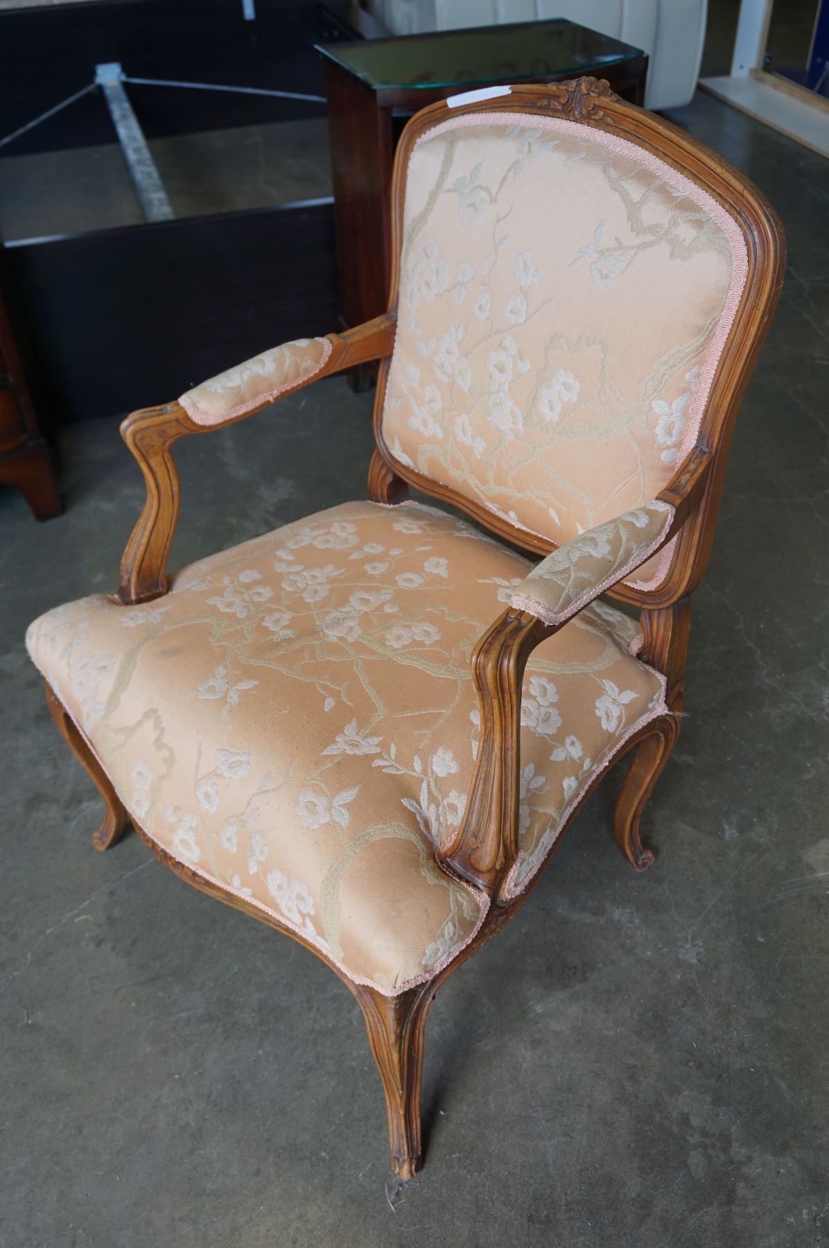 CARVED WOOD UPHOLSTERED ARM CHAIR