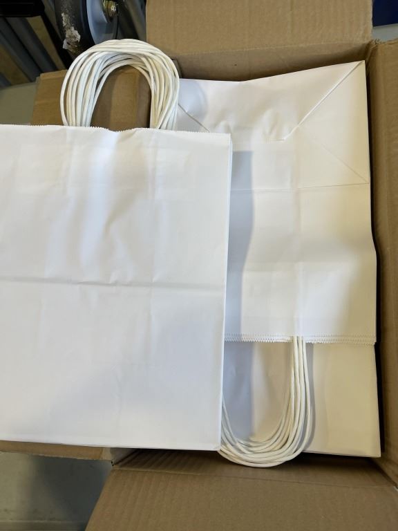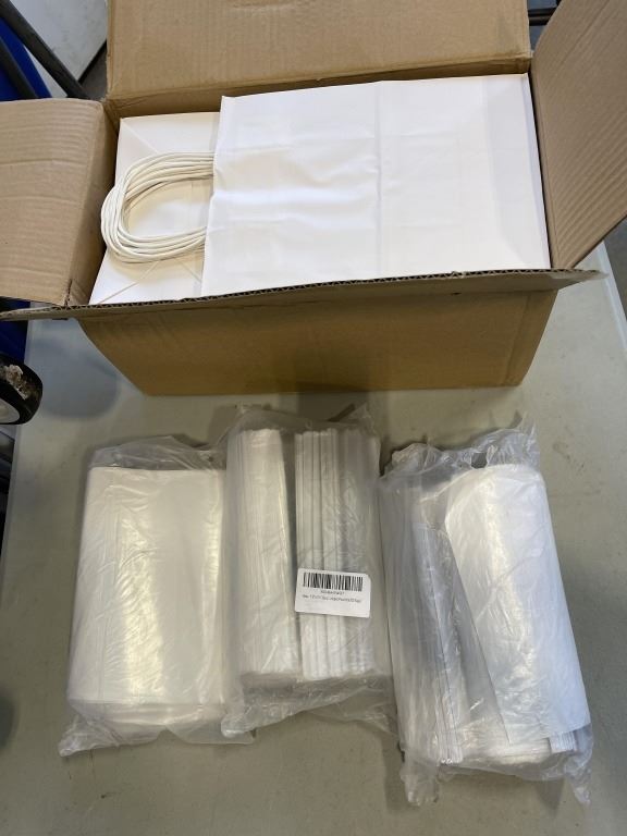 CASE OF 100 WHITE KRAFT PAPER BAGS 8" X 4.75" AND 3 BAGS OF 200 CLEAR ENVELOPE POUCHES