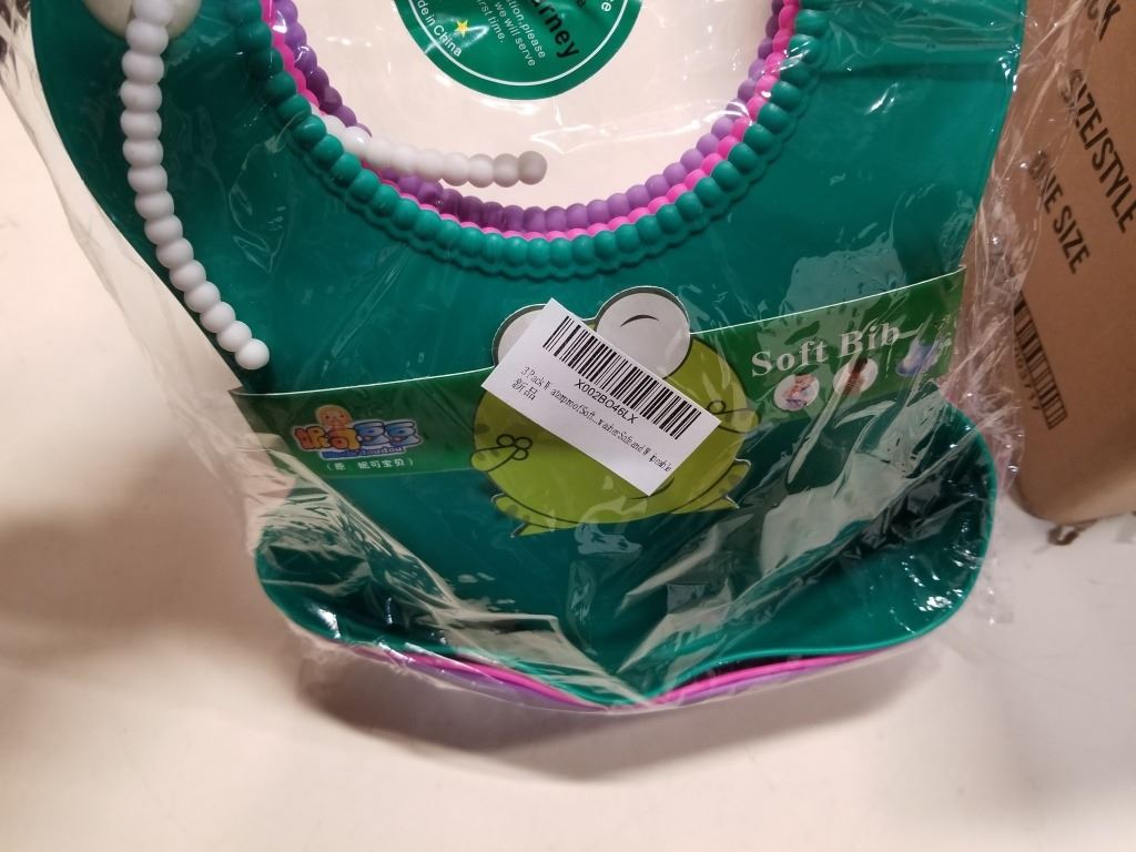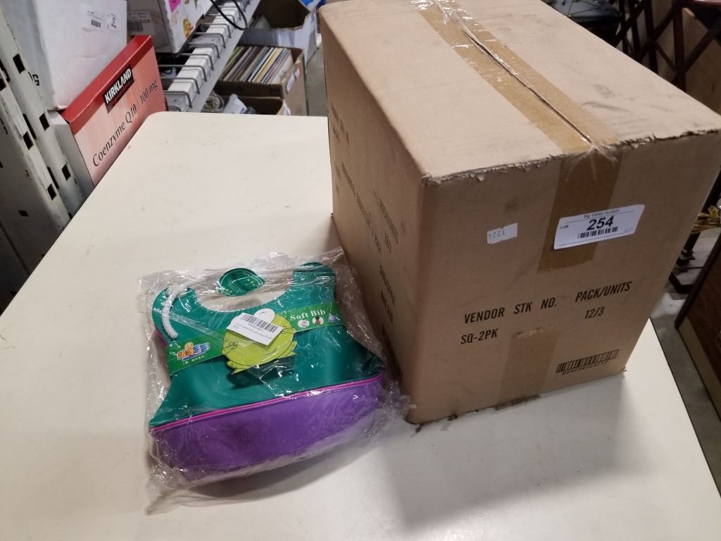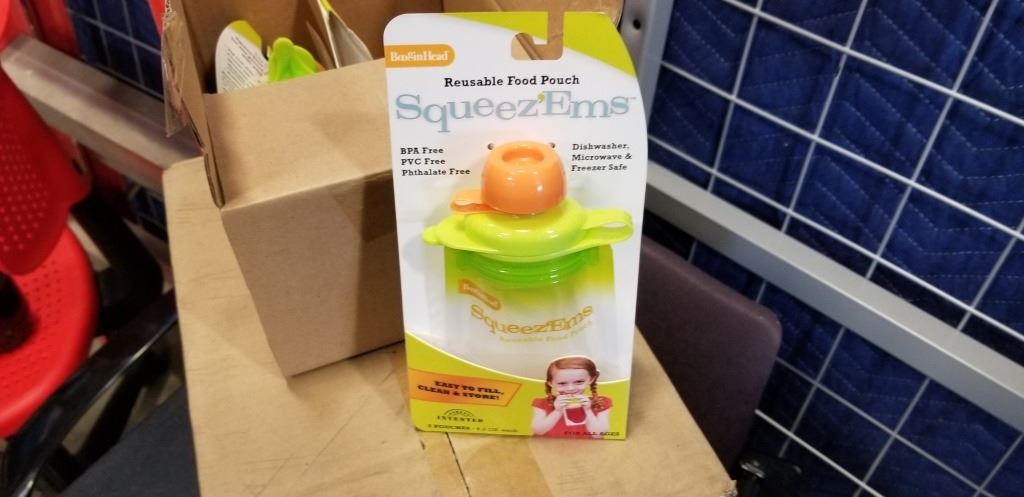 CASE OF 24 NEW SQUEEZ EMS REUSABLE FOOD POUCHES RETAIL $11.99 FOR 2 - RETAIL TOTAL $140 AND SOFT BIBS