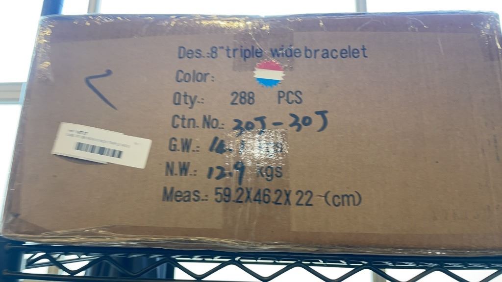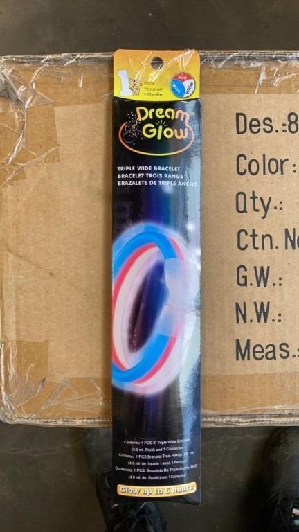 CASE OF 288 NEW 8 INCH TRIPLE WIDE GLOWSTICK BRACELETS - RED WHITE AND BLUE