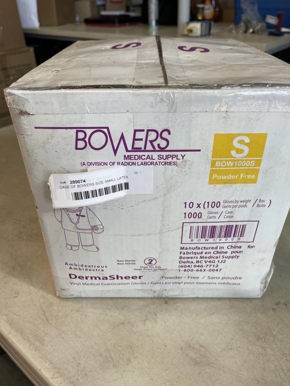 CASE OF BOWERS SIZE SMALL LATEX GLOVES