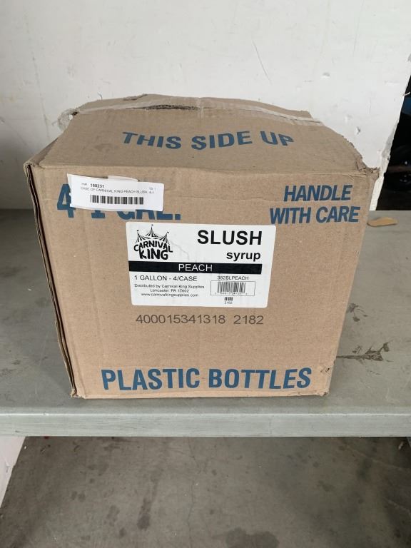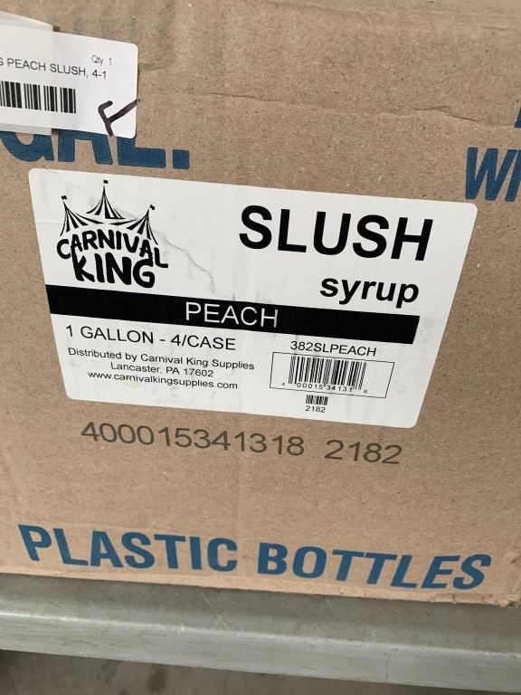 CASE OF CARNIVAL KING PEACH SLUSH, 4-1 GALLON JUGS