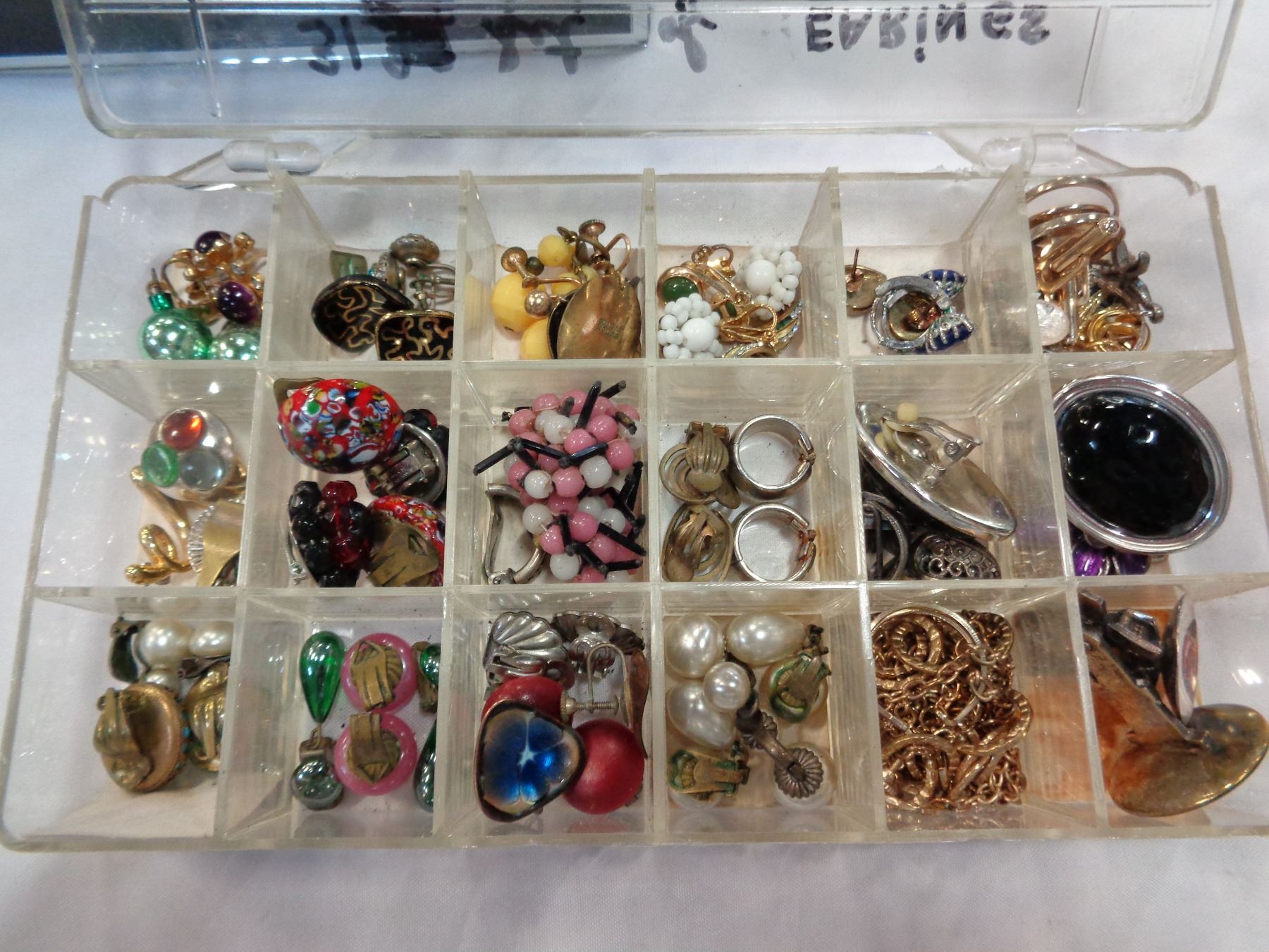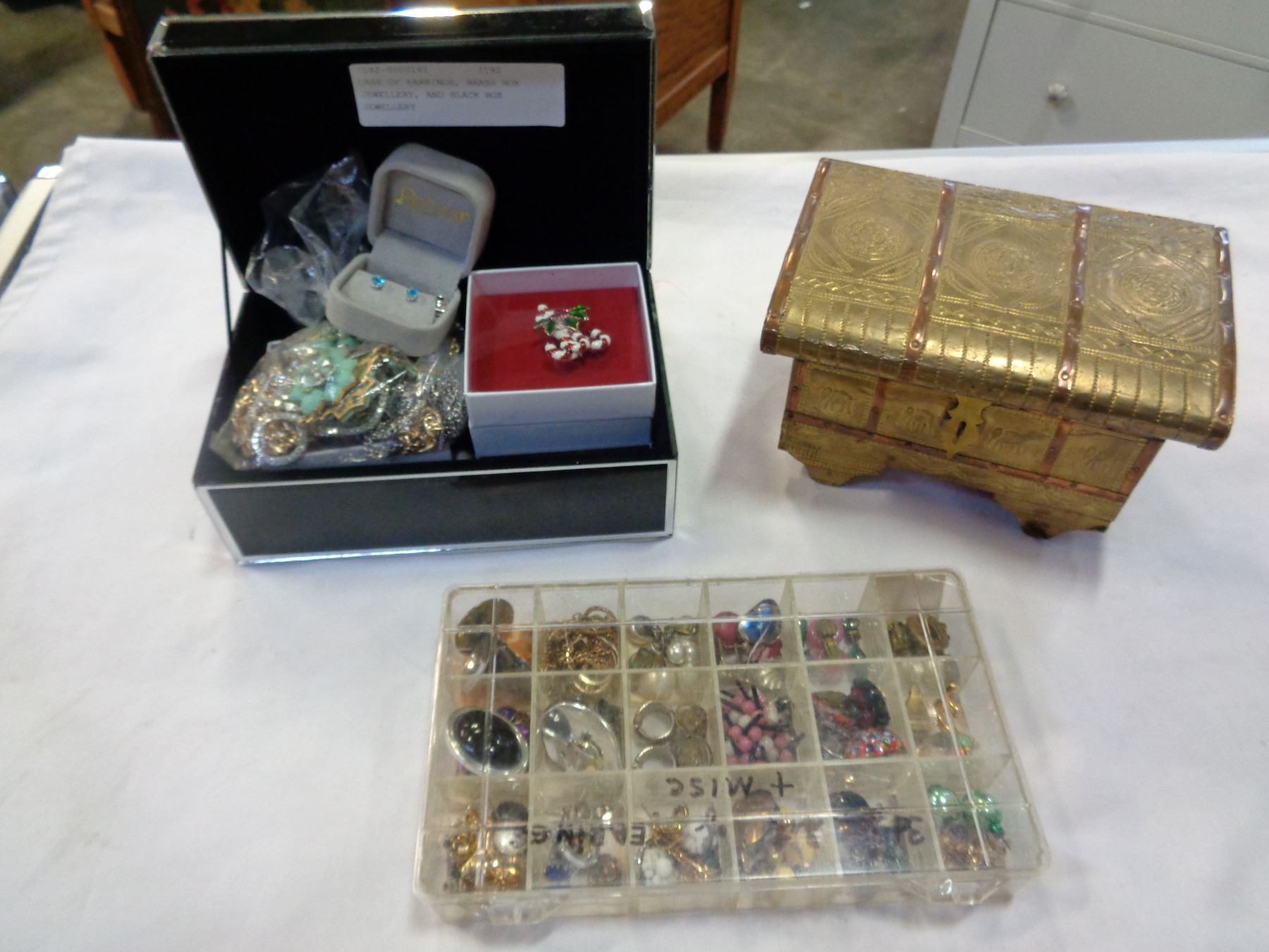 CASE OF EARRINGS, BRASS BOX JEWELLERY, AND BLACK BOX JEWELLERY